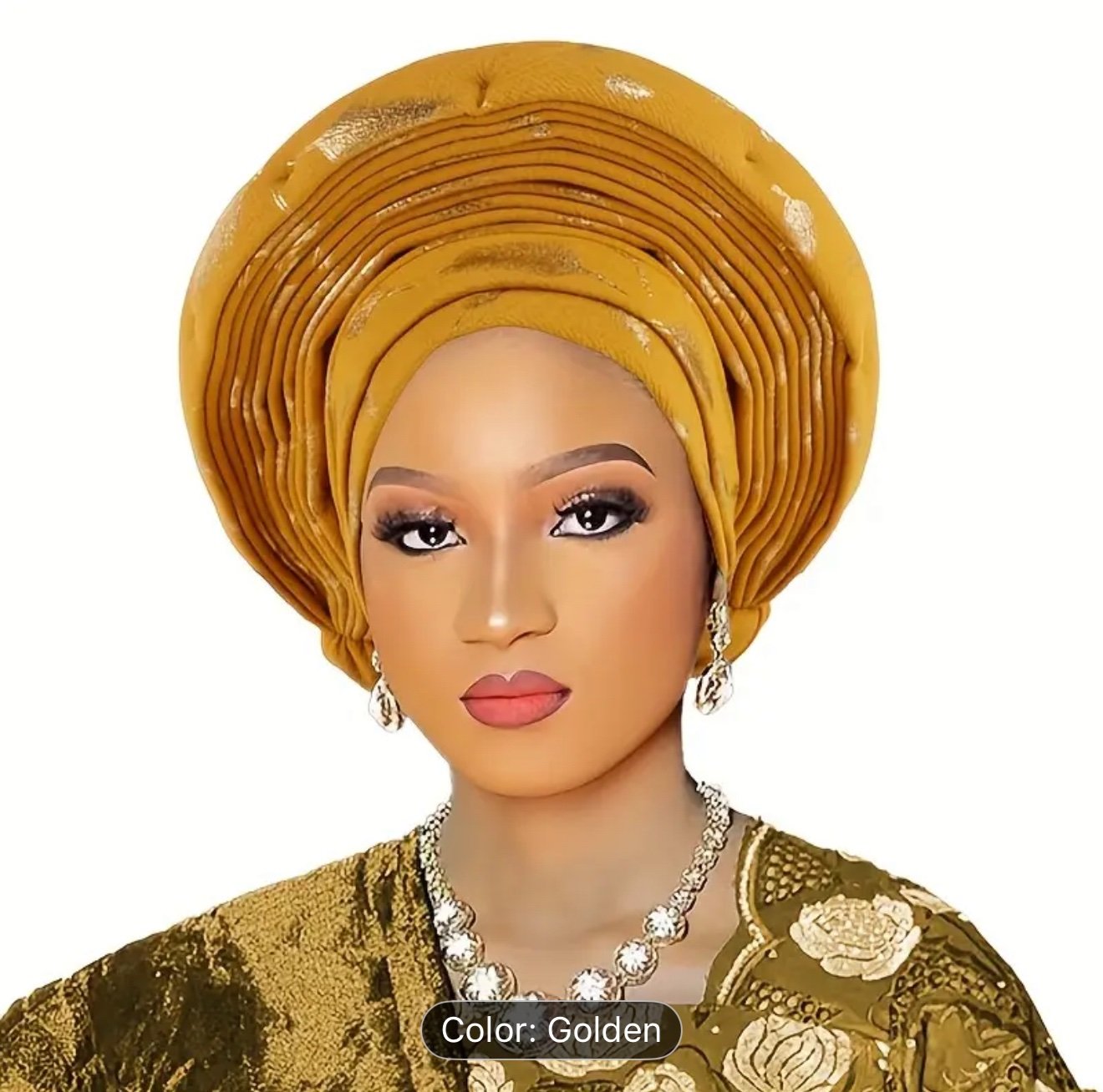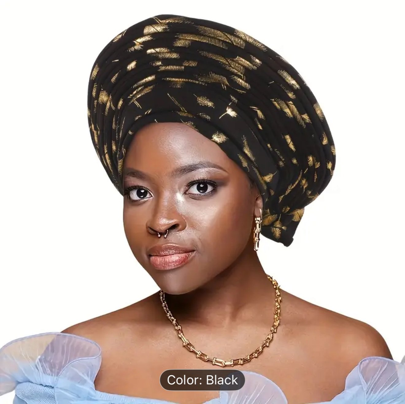 Elegant Floral Headscarf/Turban. Nigerian-Inspired African Wrap for Women | Lightweight, Multi-Layered, with golden prints. Perfect for Weddings & Formal Events, Wedding Headwear | Floral Pattern Scarf