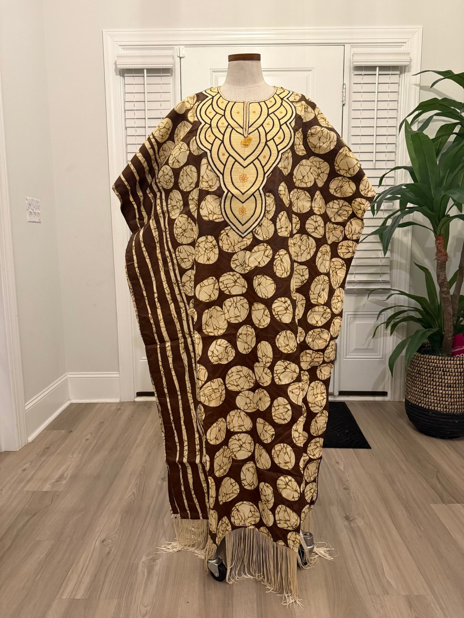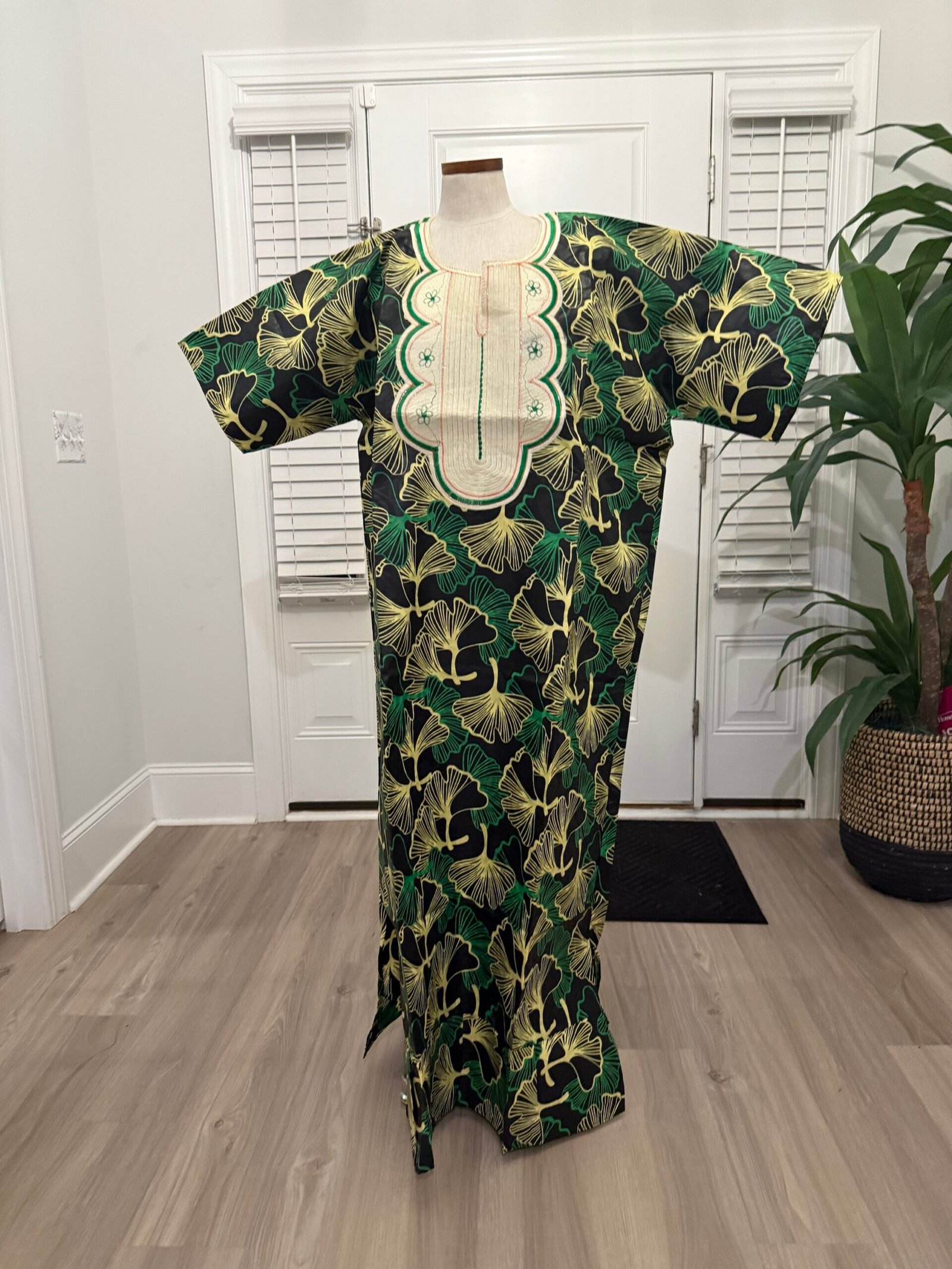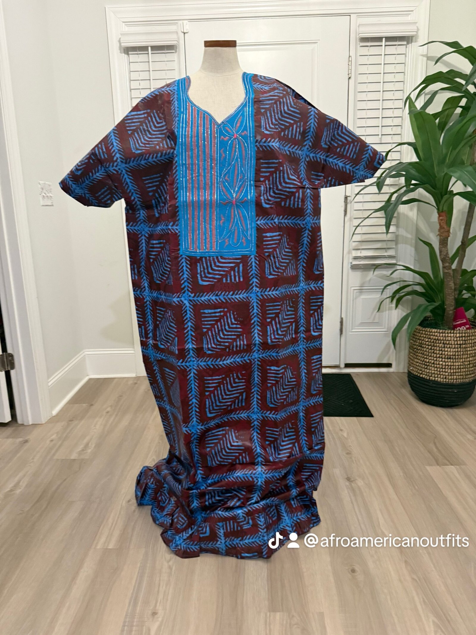 African Women Embroidered Brocade Batik/Adire Print Kaftan/Bubu