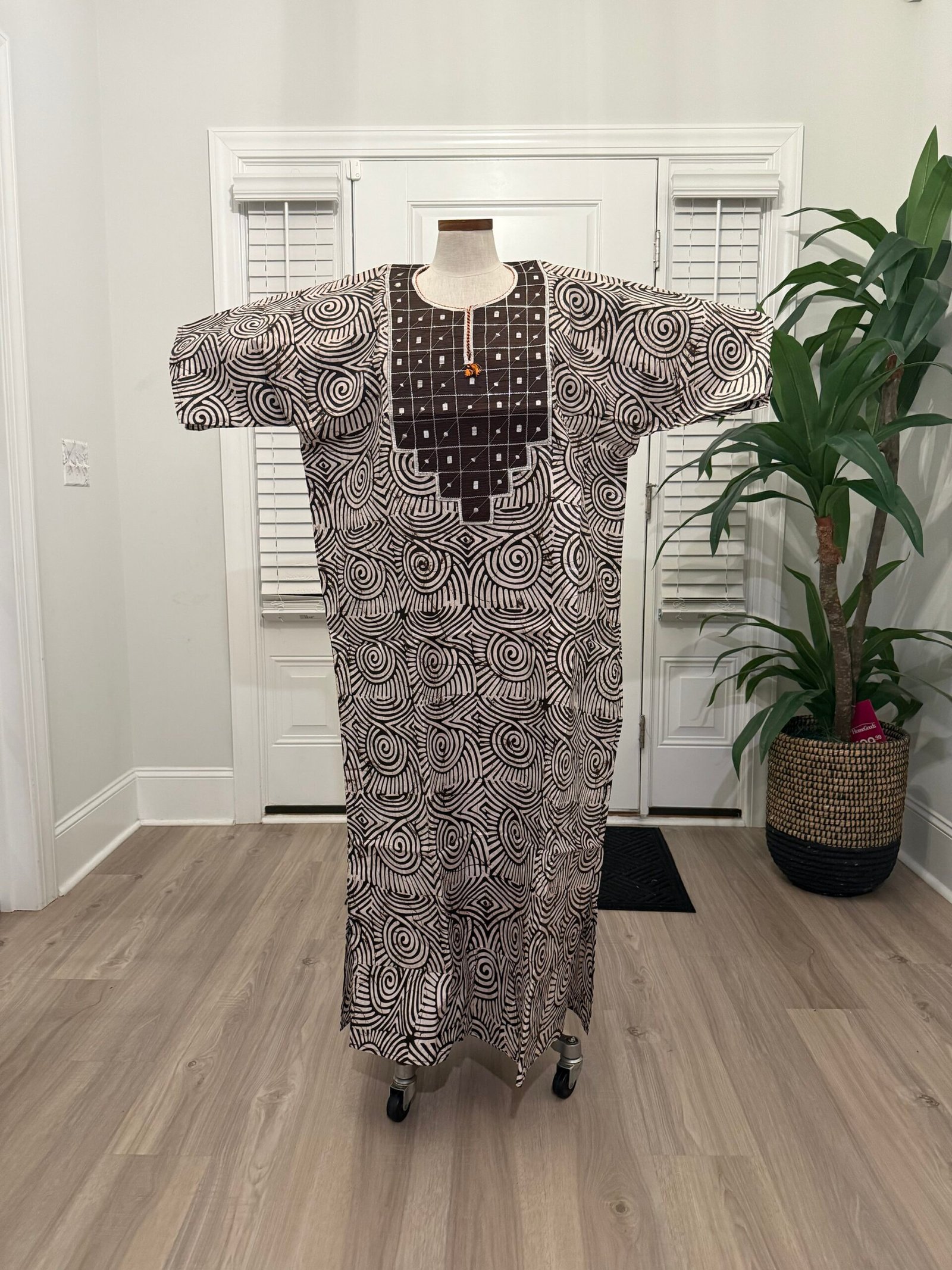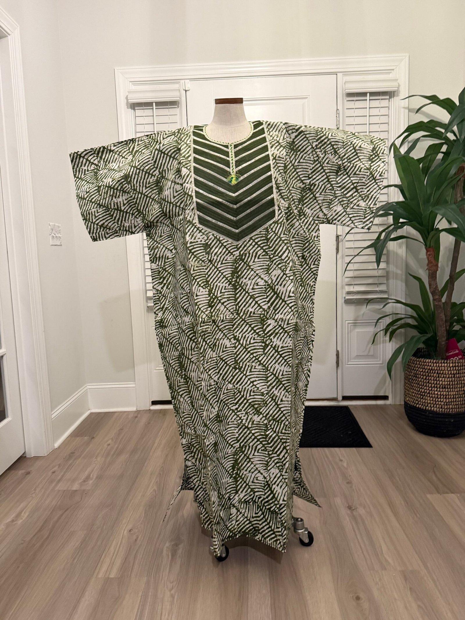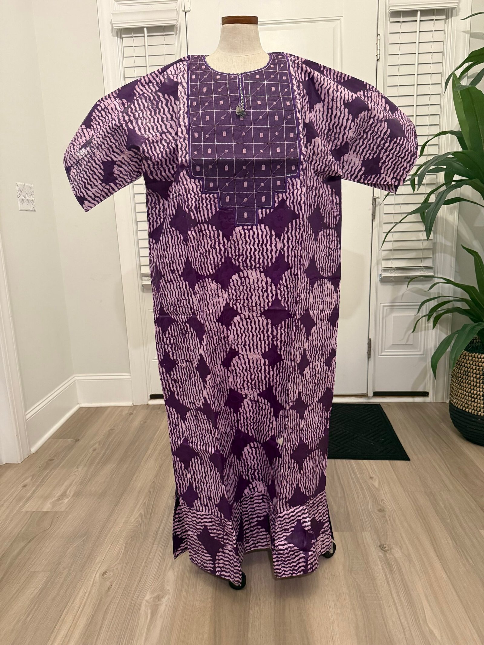 African Women Embroidered Brocade Batik/Adire Print Kaftan/Bubu
