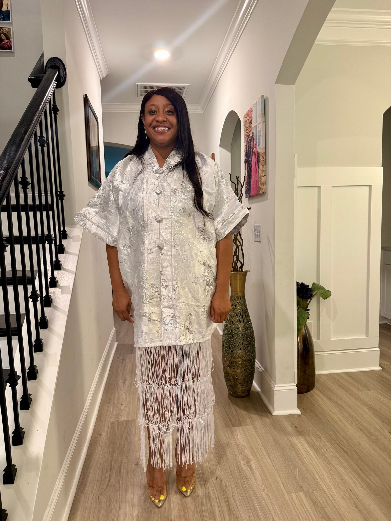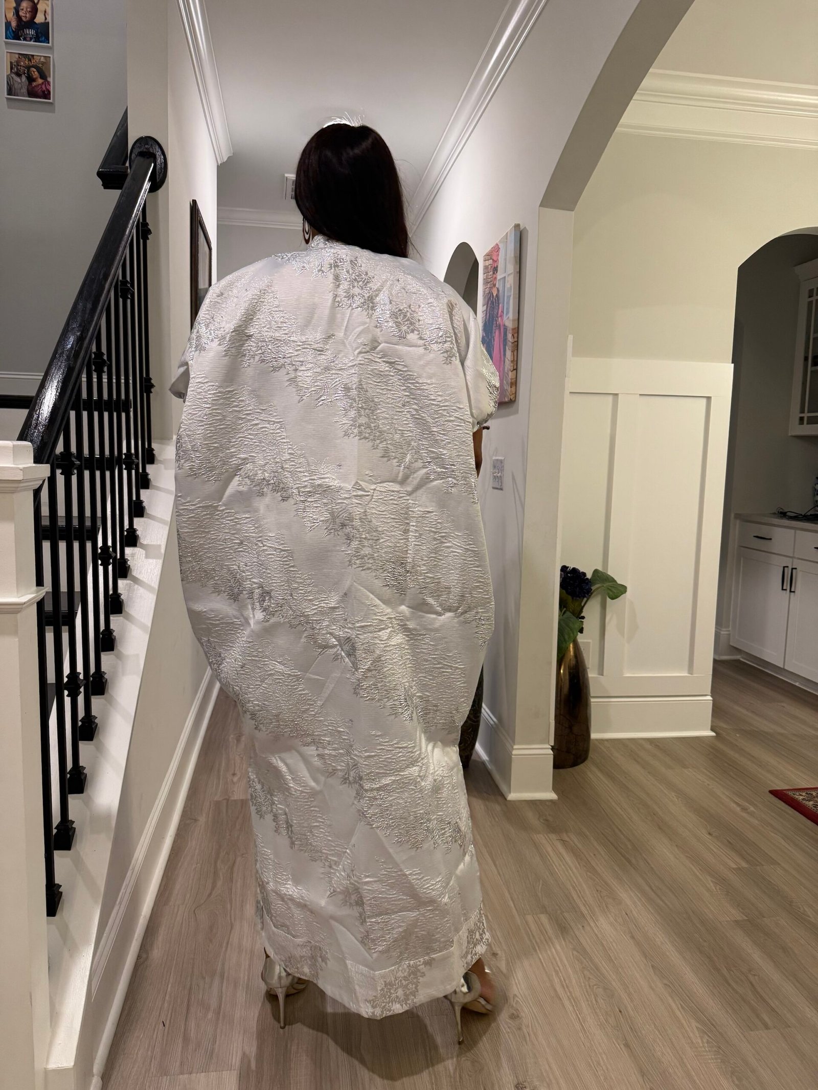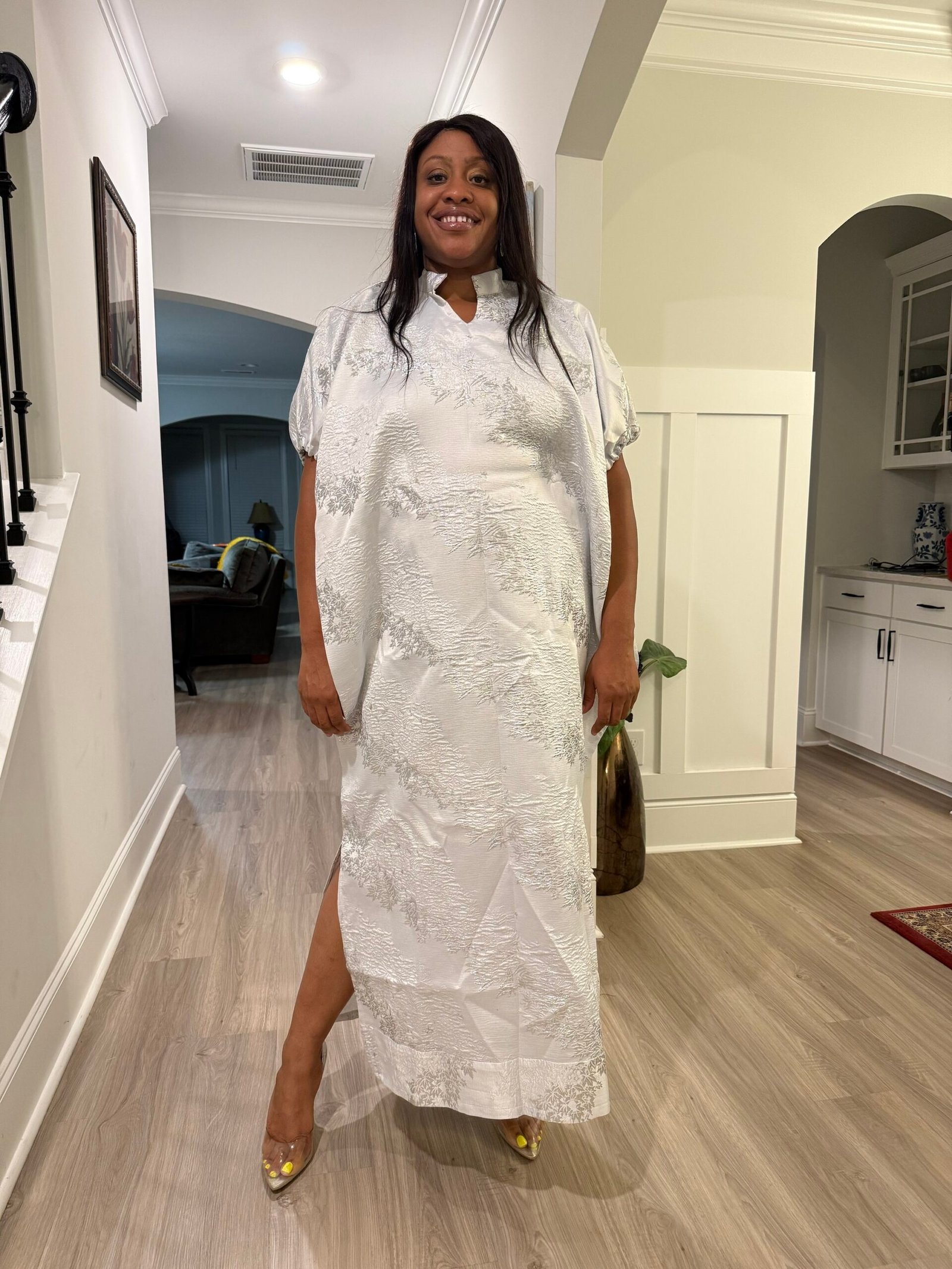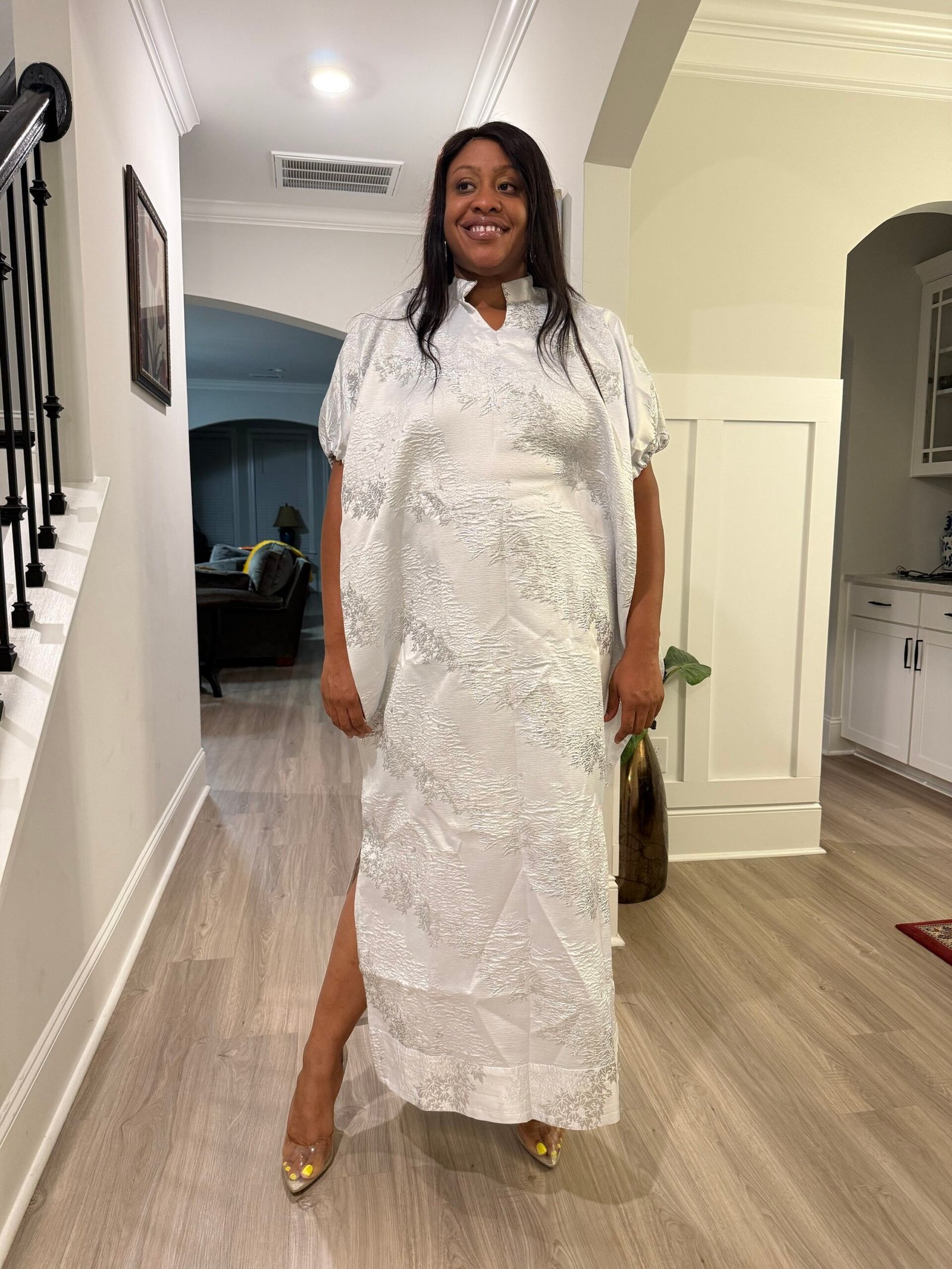 White Brocade African Maxi Dress: Modern Bubu Boubou Gown