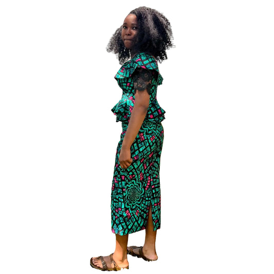 African Wax Print Ankara/Cord Lace Skirt and Blouse