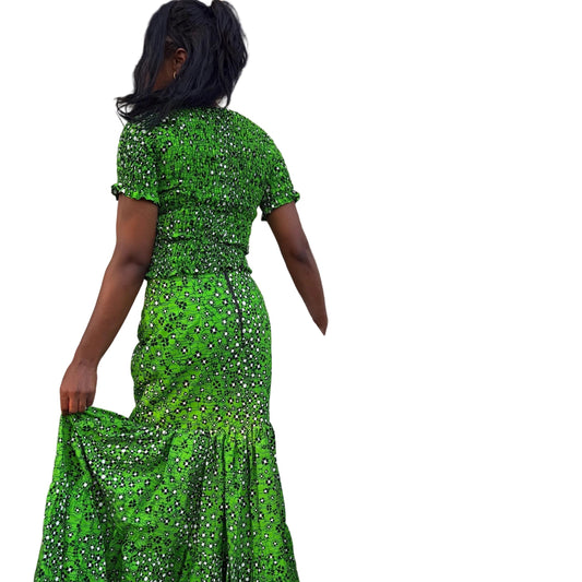 African Wax Print Ankara Smoked Top 2p Skirt and Blouse