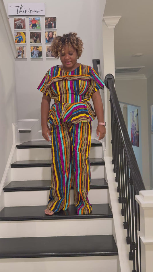 African Ankara Afro Kiara Stripped 2p Pant Set