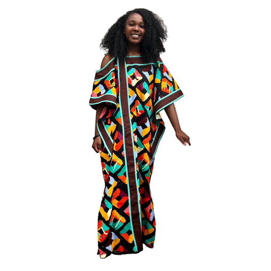 African Ankara Wax Print Freestyle Kaftan Dress