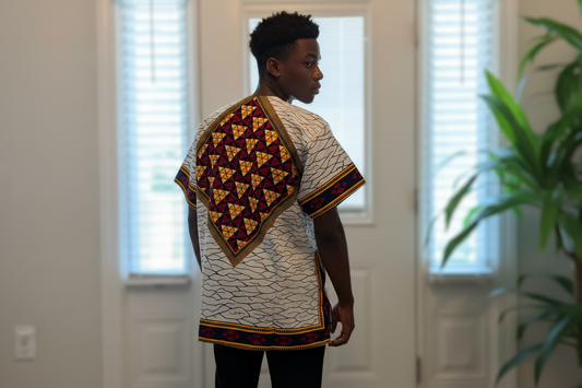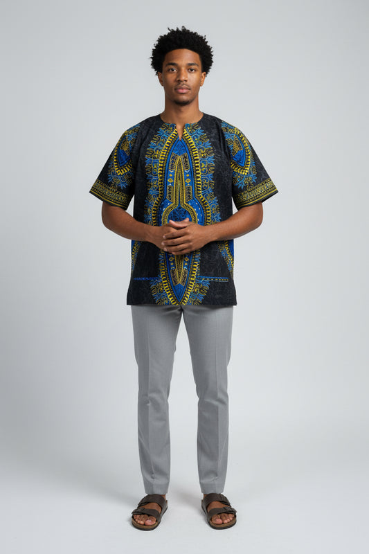African Ethnic Print Men Danshiki Top, Modern Cotton