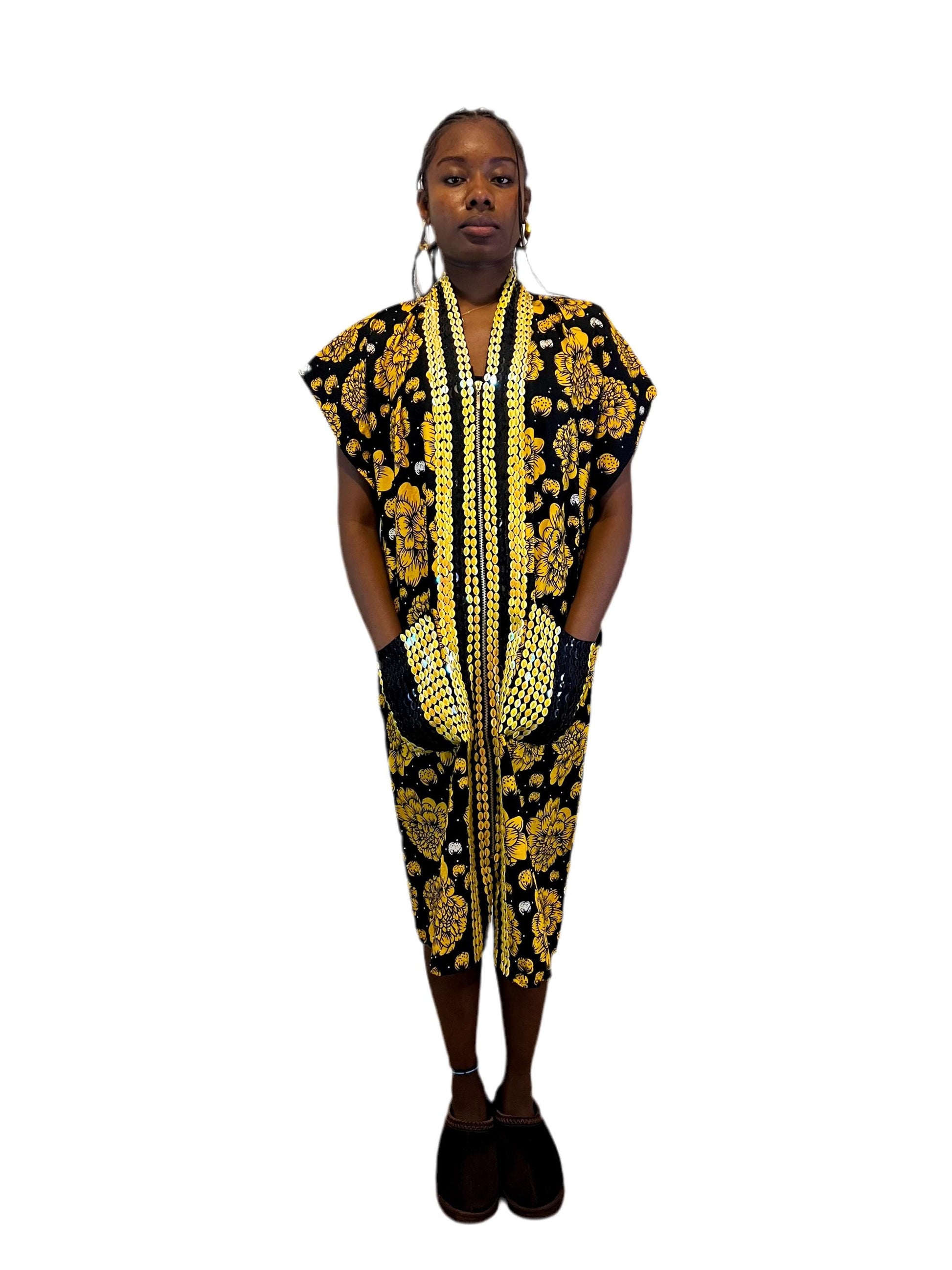 African Ankara Hand Beaded Short Maxi Bubu/Dress