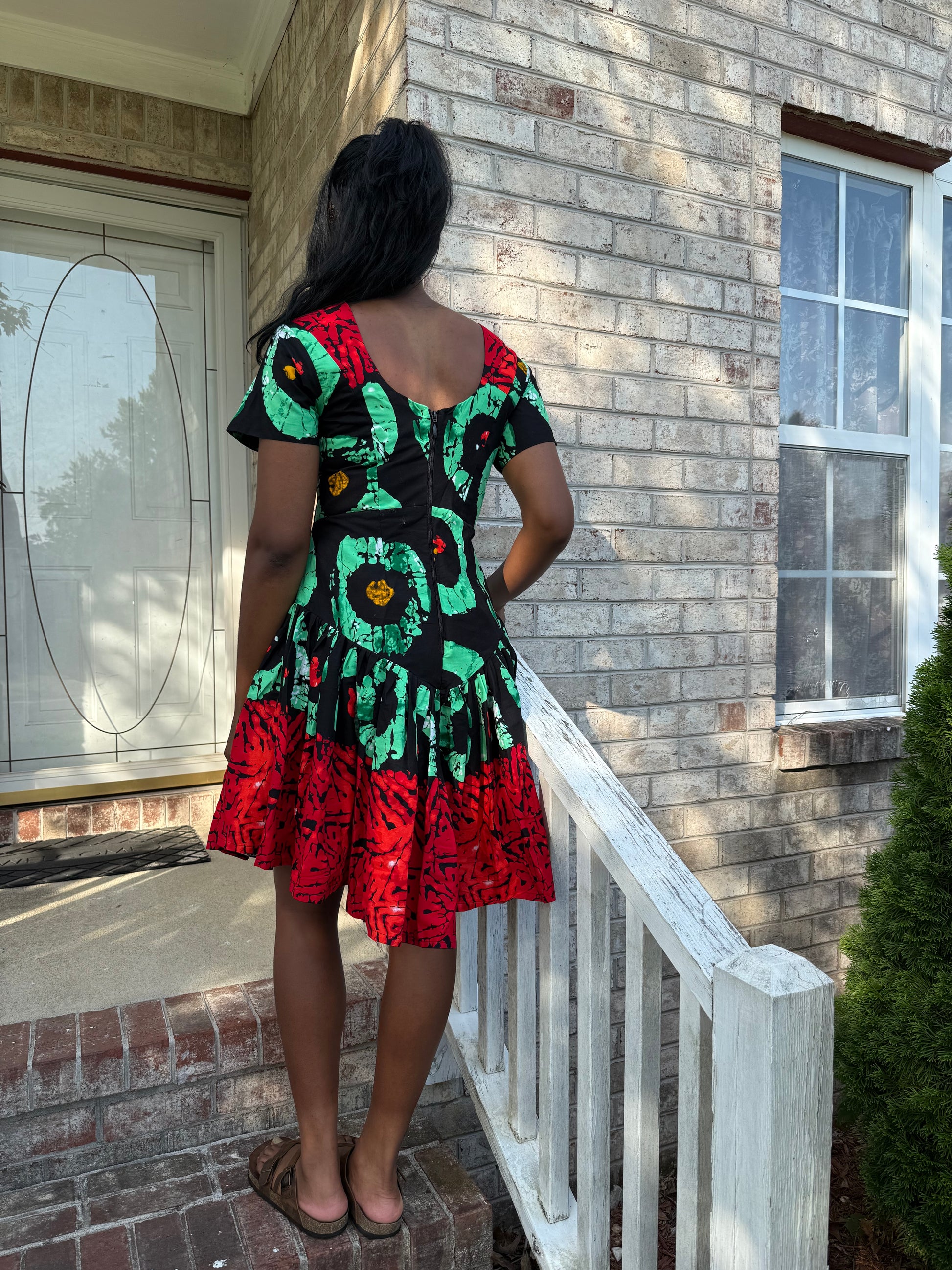 PATTERN: Vibrant African-inspired abstract print combining bold colors and artistic motifs for a striking appearance