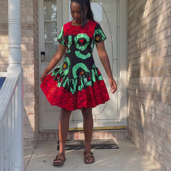 Make a bold fashion statement with this stunning African print midi dress that seamlessly blends traditional patterns with contemporary style. The dress features eye-catching abstract prints in vibrant colors, creating a dynamic visual appeal. The elegant A-line silhouette is enhanced by distinctive 3/4 balloon sleeves that add a touch of drama and sophistication. The midi length makes it versatile for various occasions, from office wear to special events. The dress showcases a harmonious combination of patterns, from geometric designs to artistic swirls, set against rich base colors. The comfortable cut allows for easy movement while maintaining a flattering shape. The round neckline creates a balanced, feminine silhouette. This dress is perfect for those who appreciate unique fashion pieces that combine artistic expression with wearable style. Pair it with simple accessories to let the dress's striking pattern take center stage.