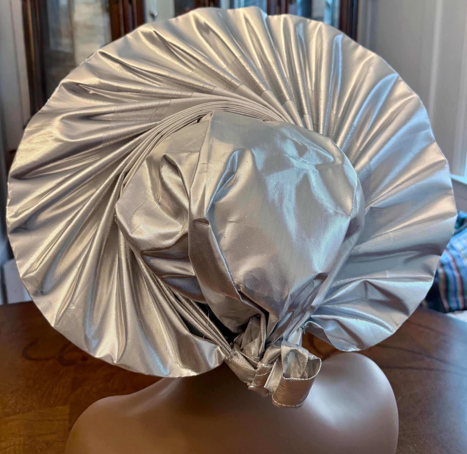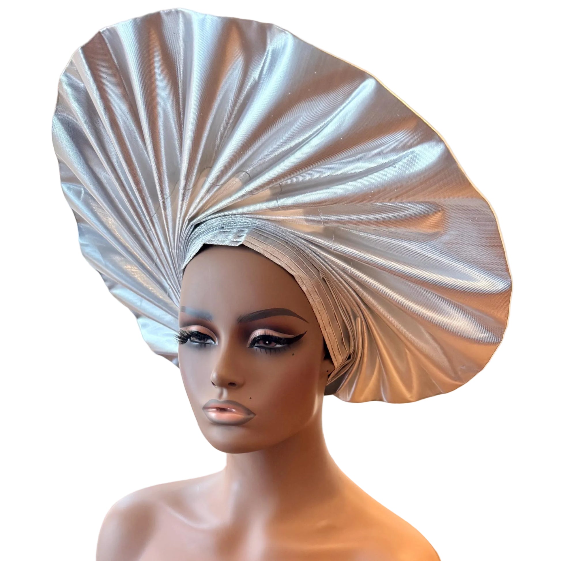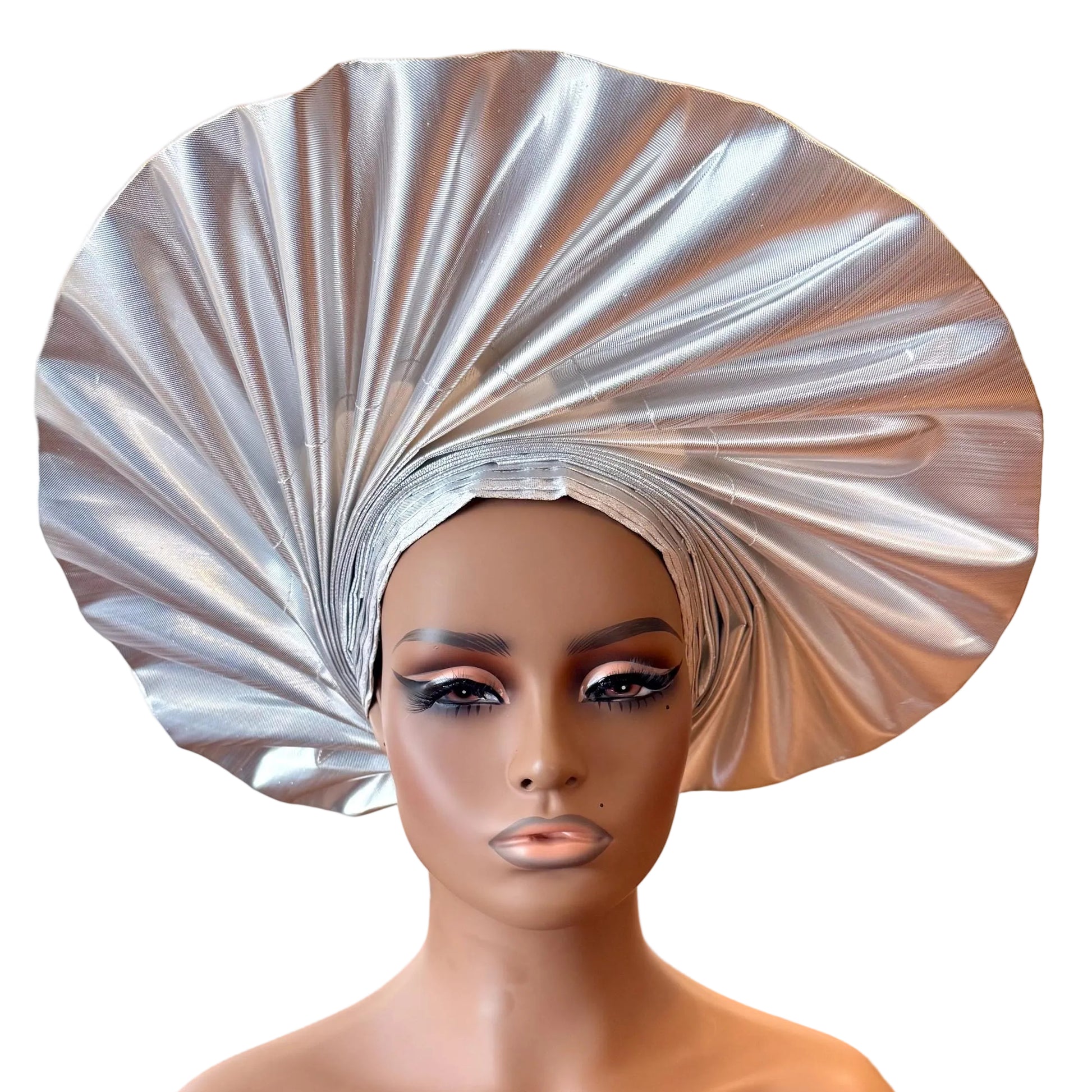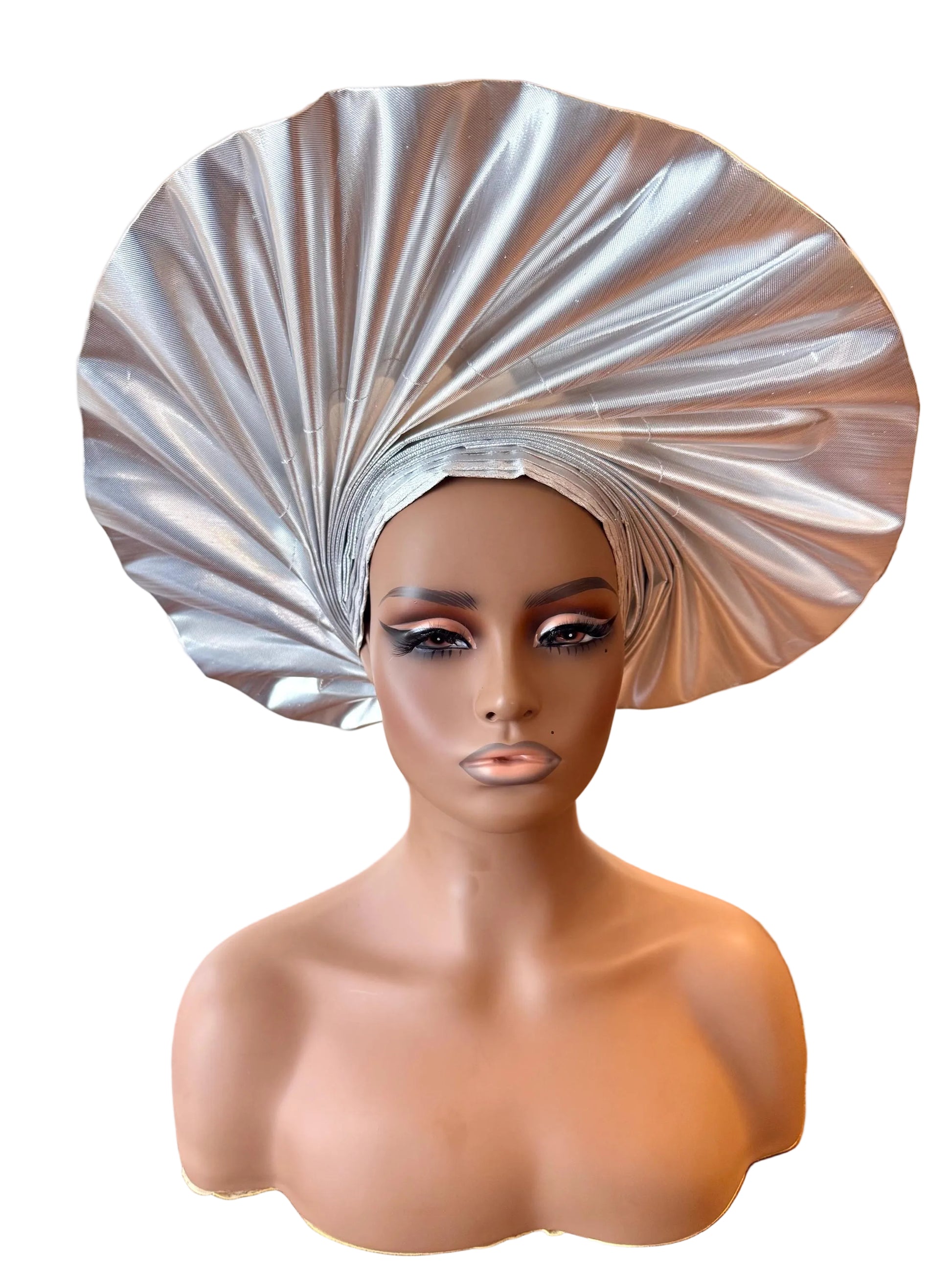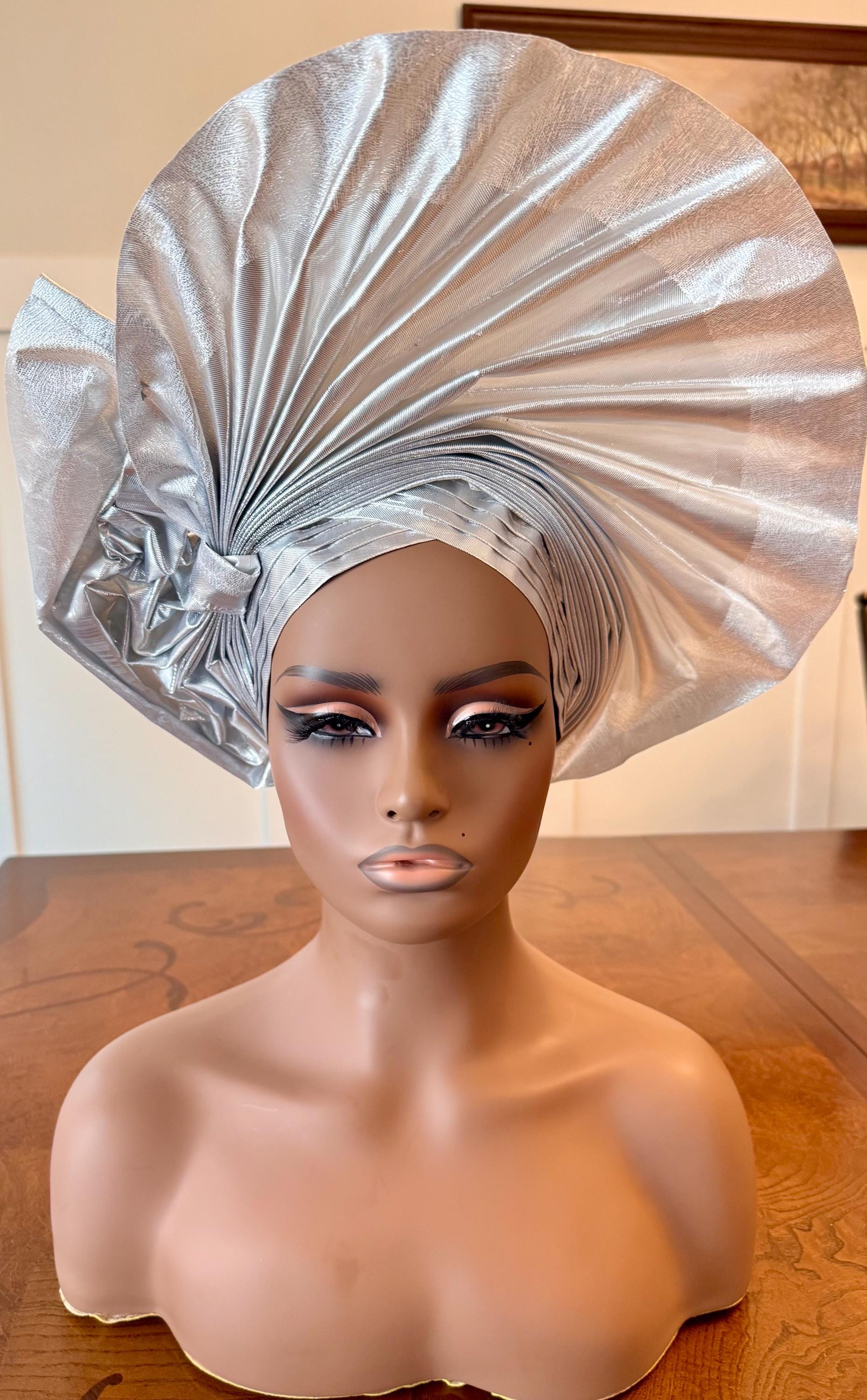 Wide loom Krontext to Cone,Stripped and Damask Patterned Aso-Oke. This special traditional bridal headwear set is uniquely designed to grace that special occasion. The high quality double woven thread makes it durable and easy to tie.