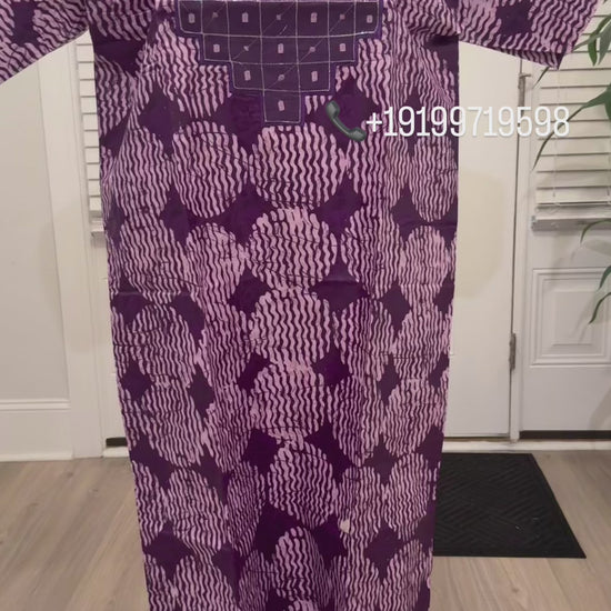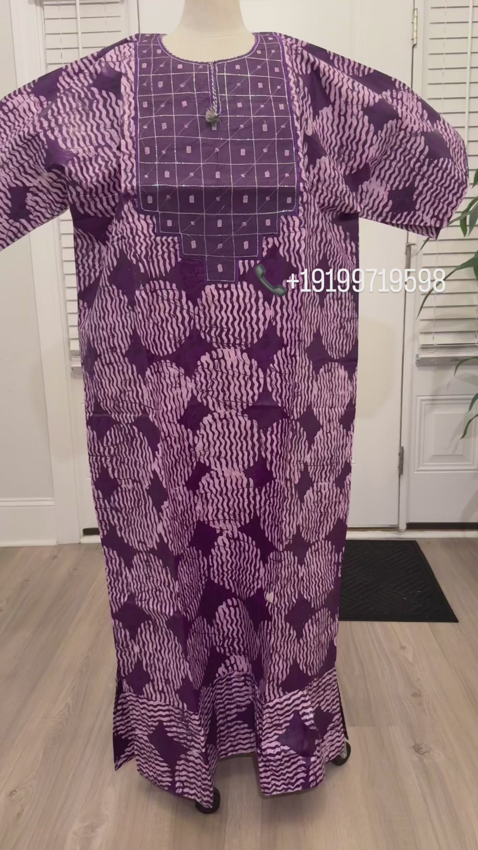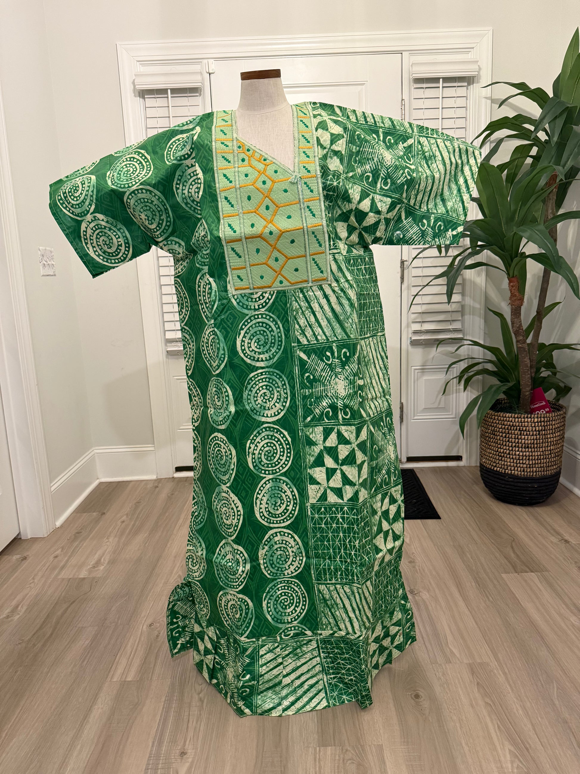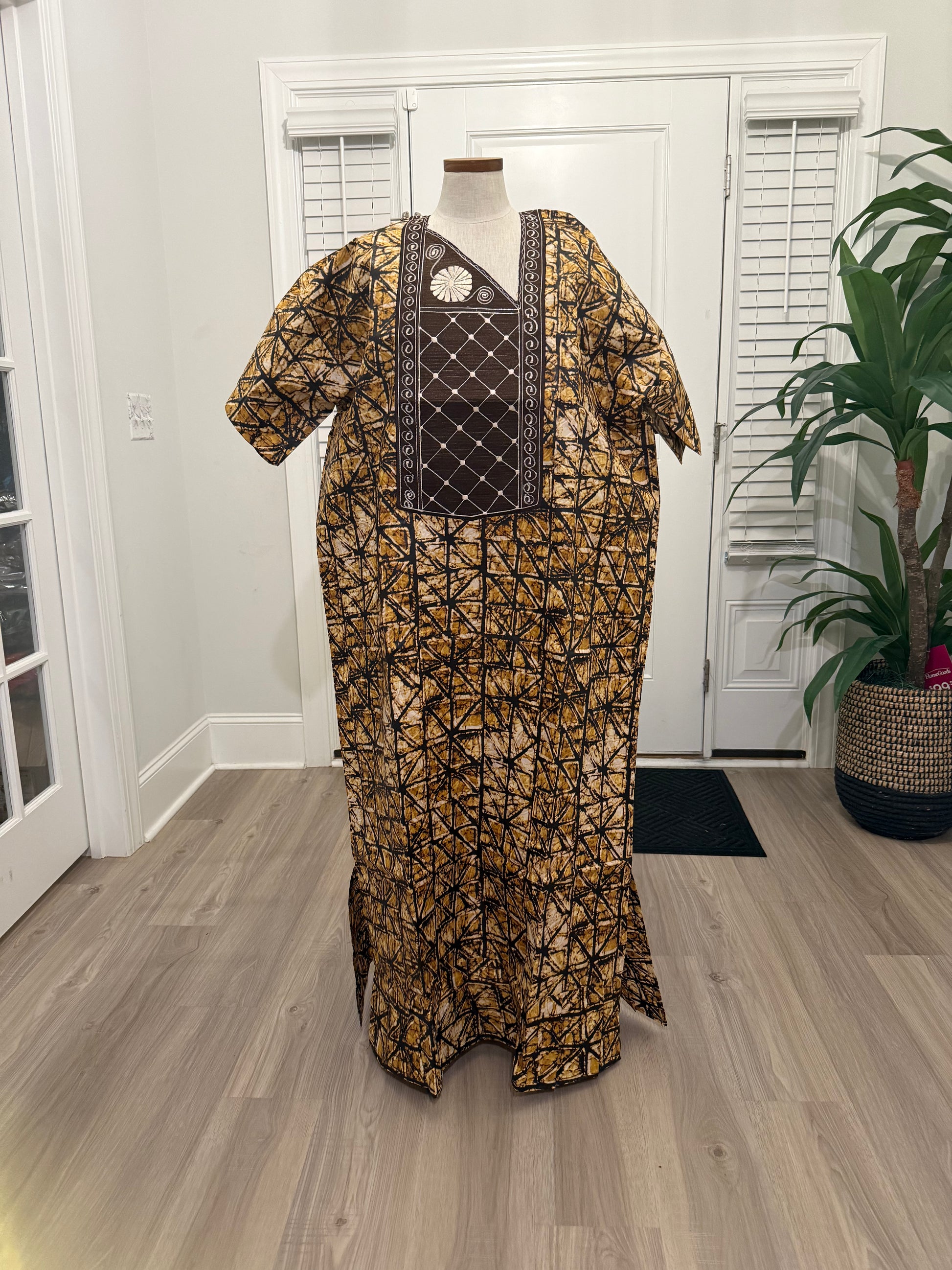 African Women Embroidered Brocade Batik/Adire Print Kaftan/Bubu