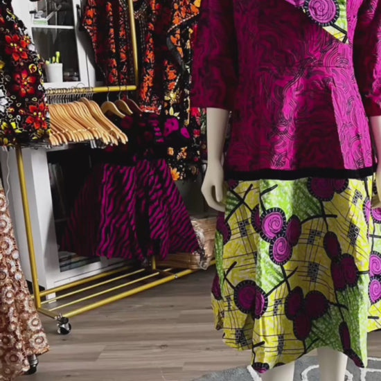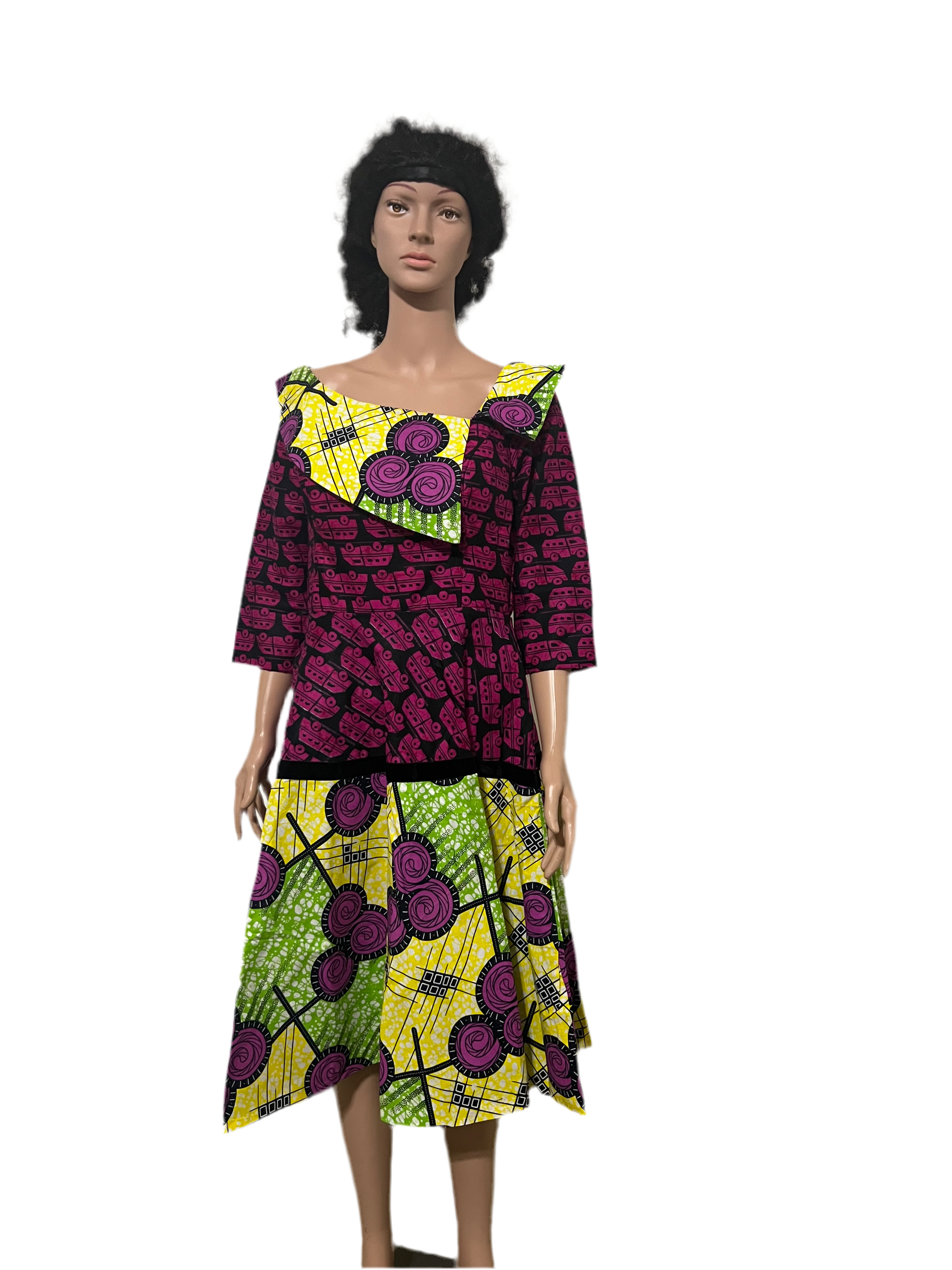 This colorful 100% cotton Ankara dress is a vibrant and eye-catching garment that showcases the rich cultural heritage and artistic traditions of Africa. This dress feature bold and intricate geometric patterns. The use of 100% Phoenix Hitarget cotton fabric ensures that the dress is breathable, comfortable, and perfect for all weather. This dress is lined for comfort.
