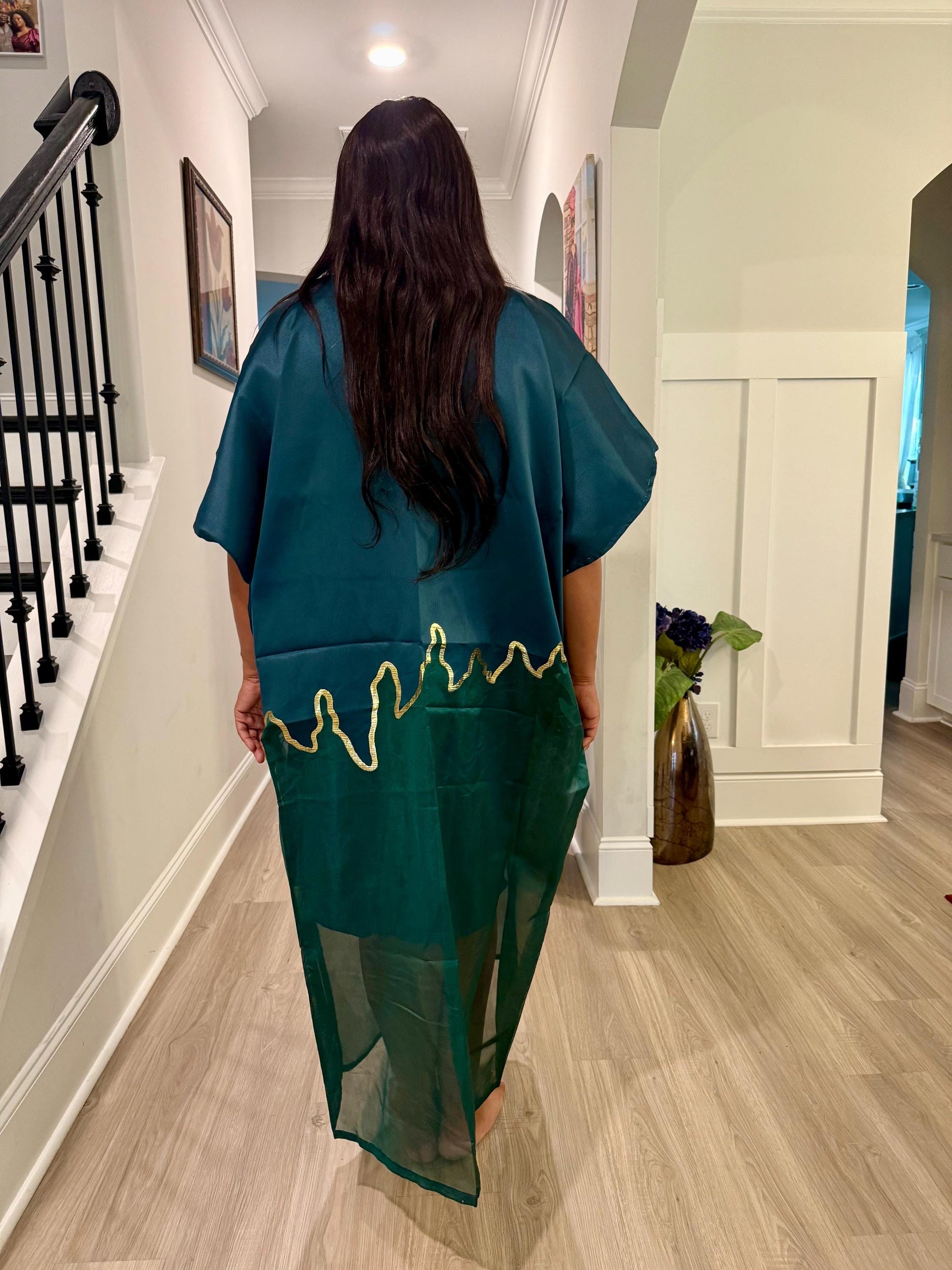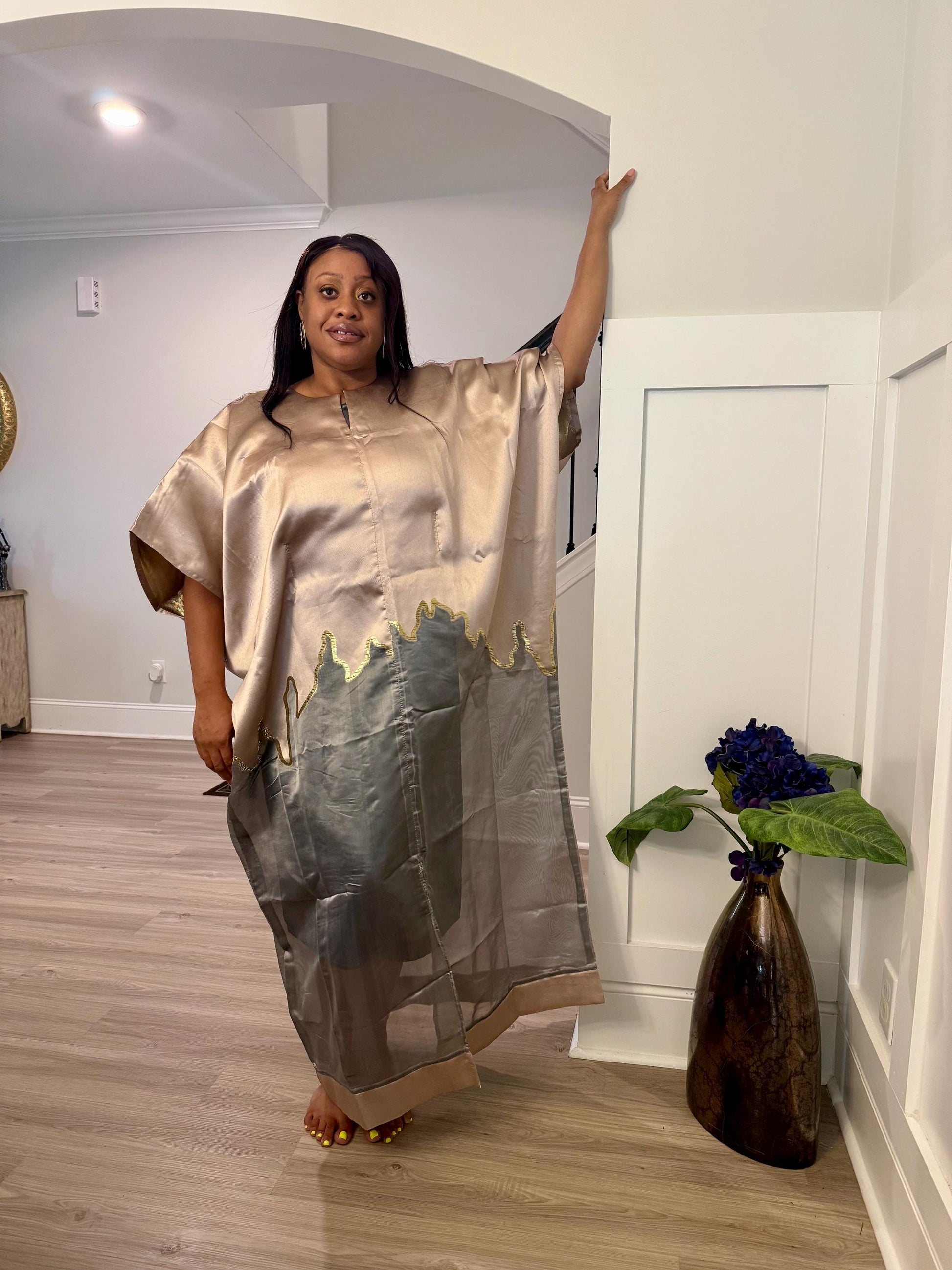 Brocade Bubu Maxi Dress: Two-Tone European Organza, Ball Sleeves special Occasions