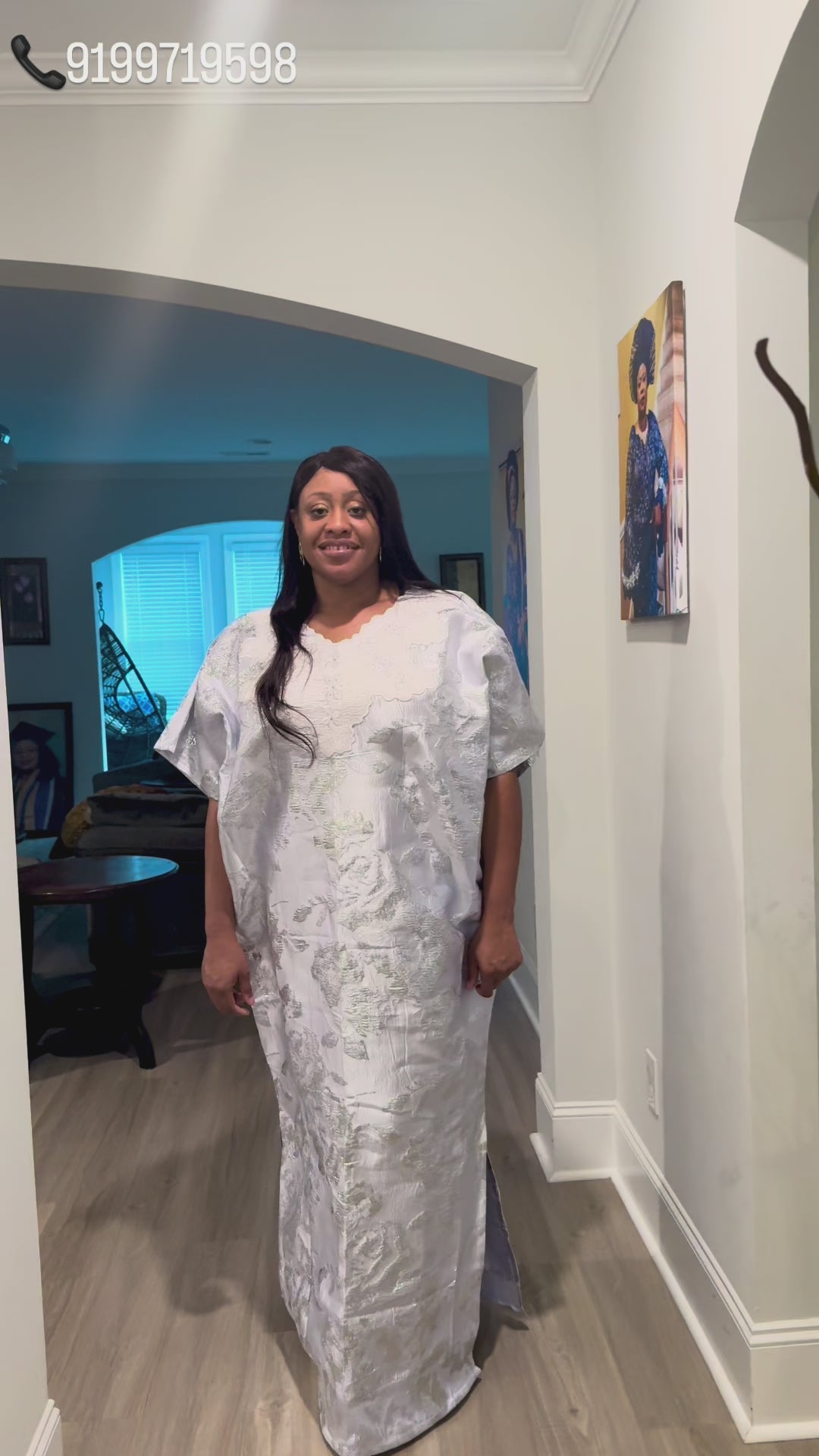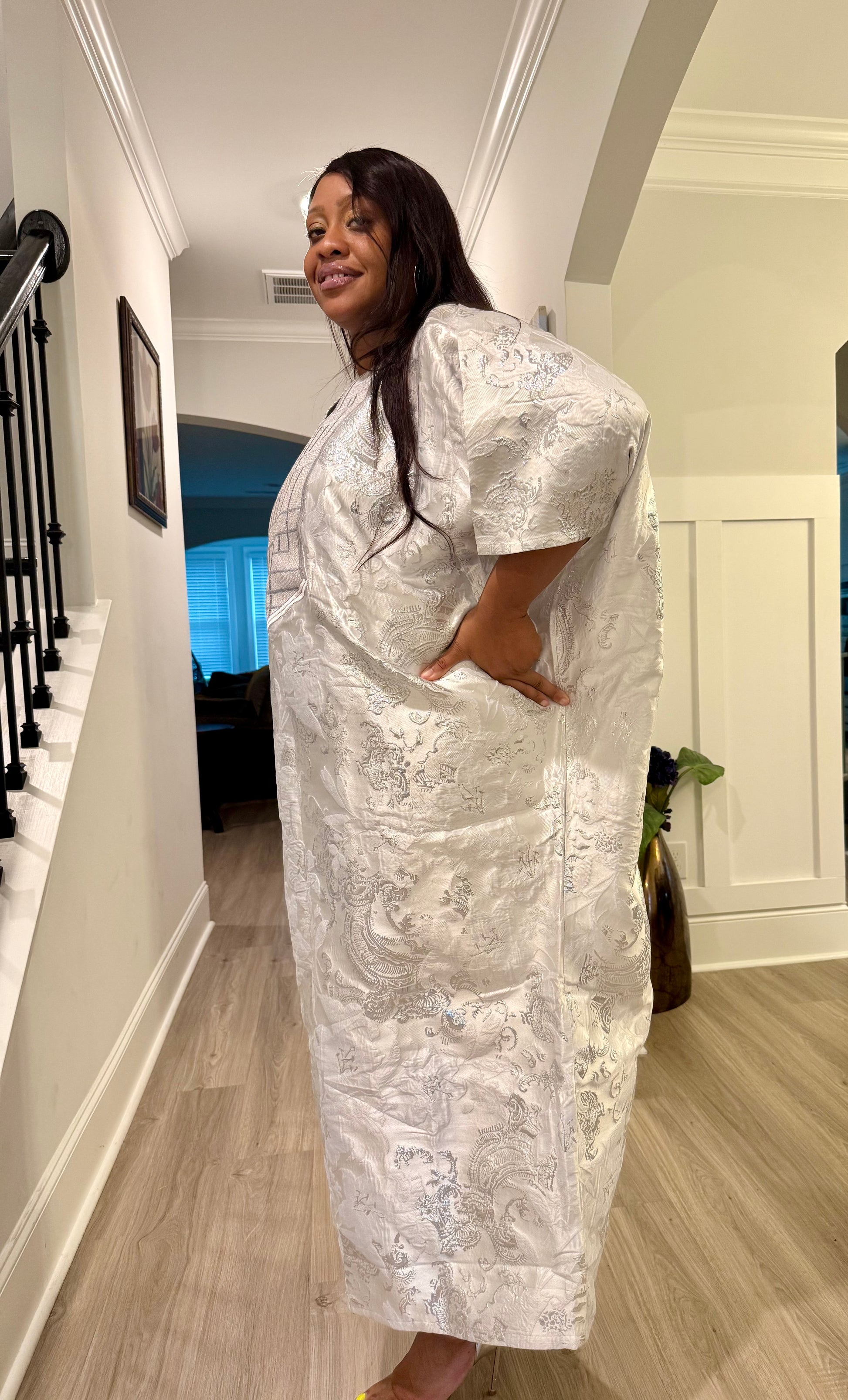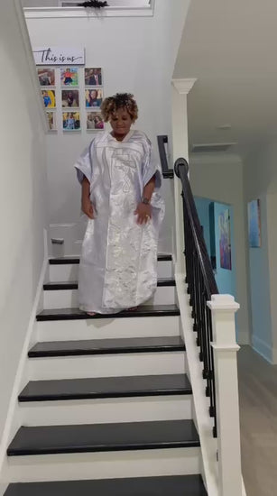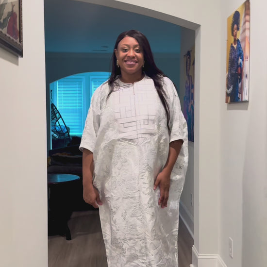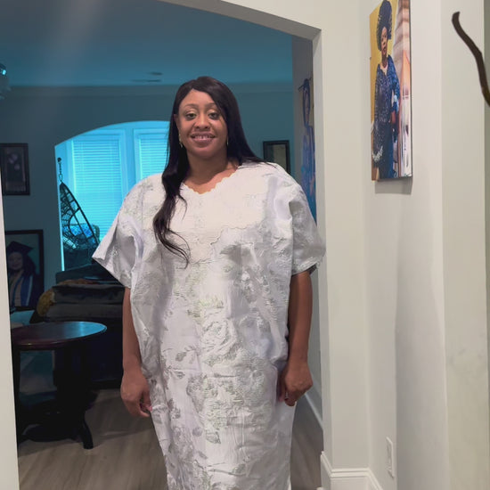 Embroidered White Brocade Maxi Dress: African Bubu Boubou Gown