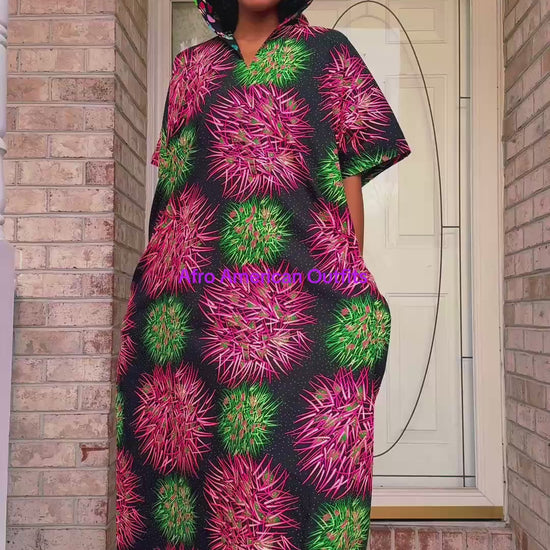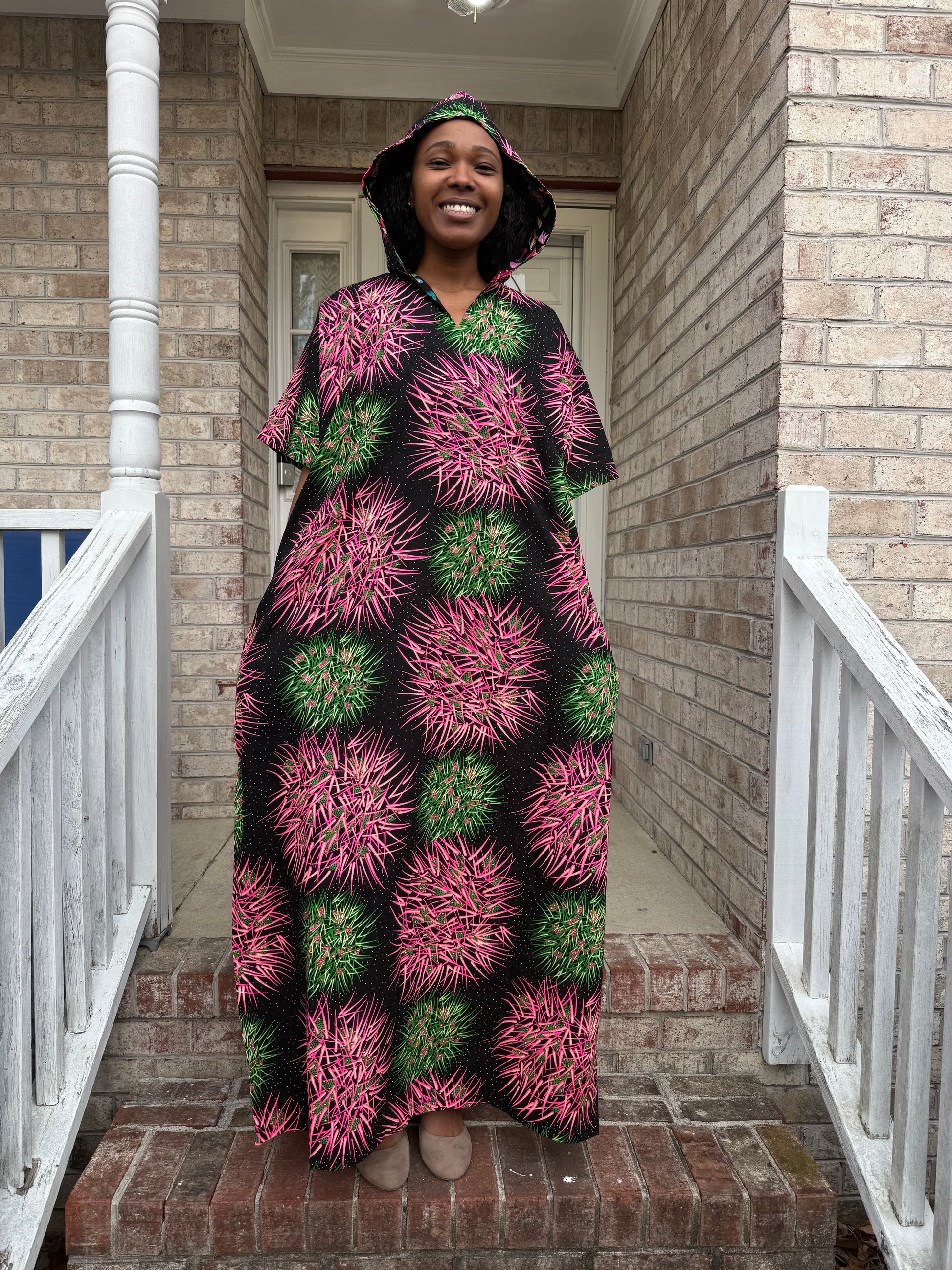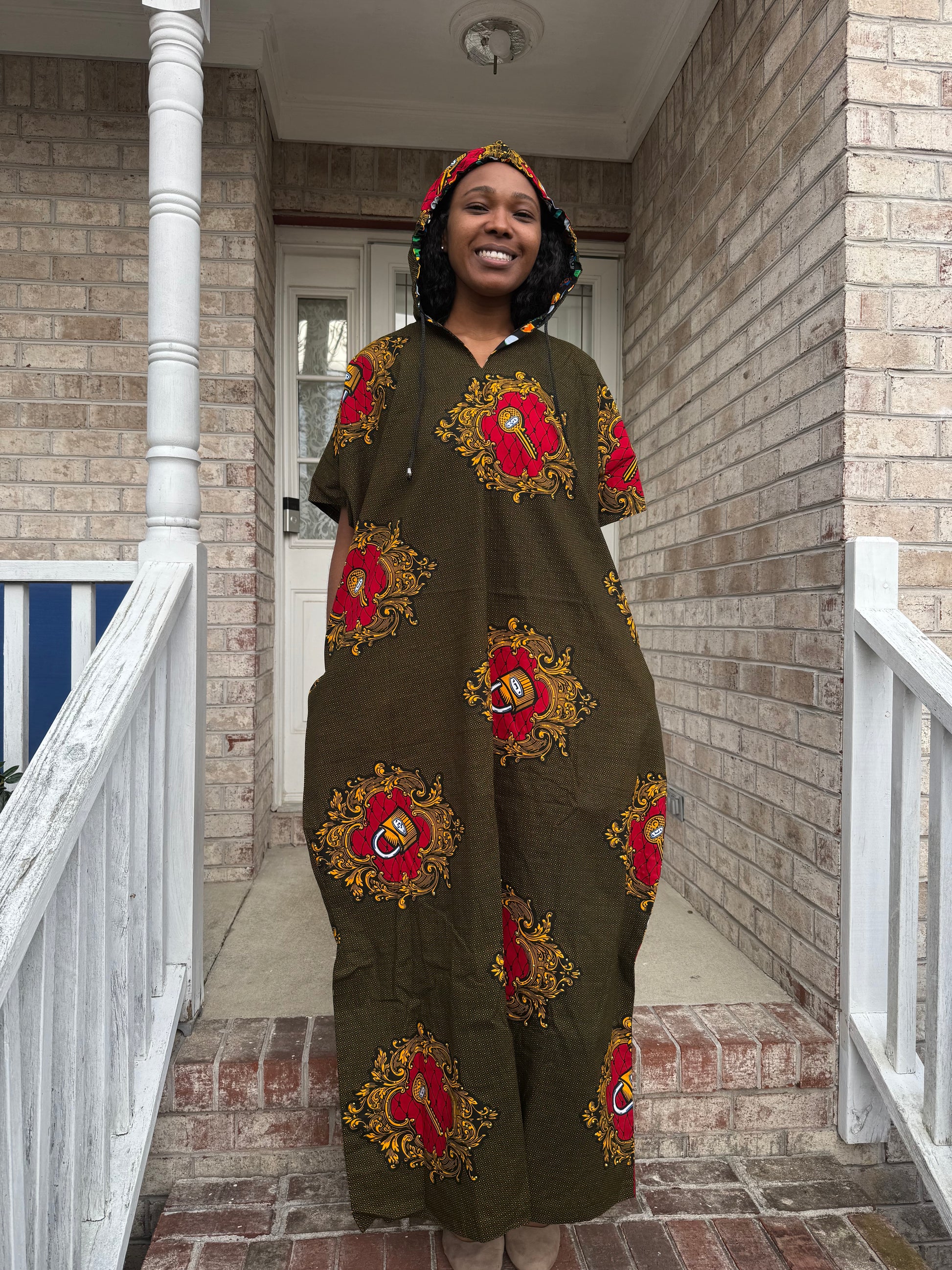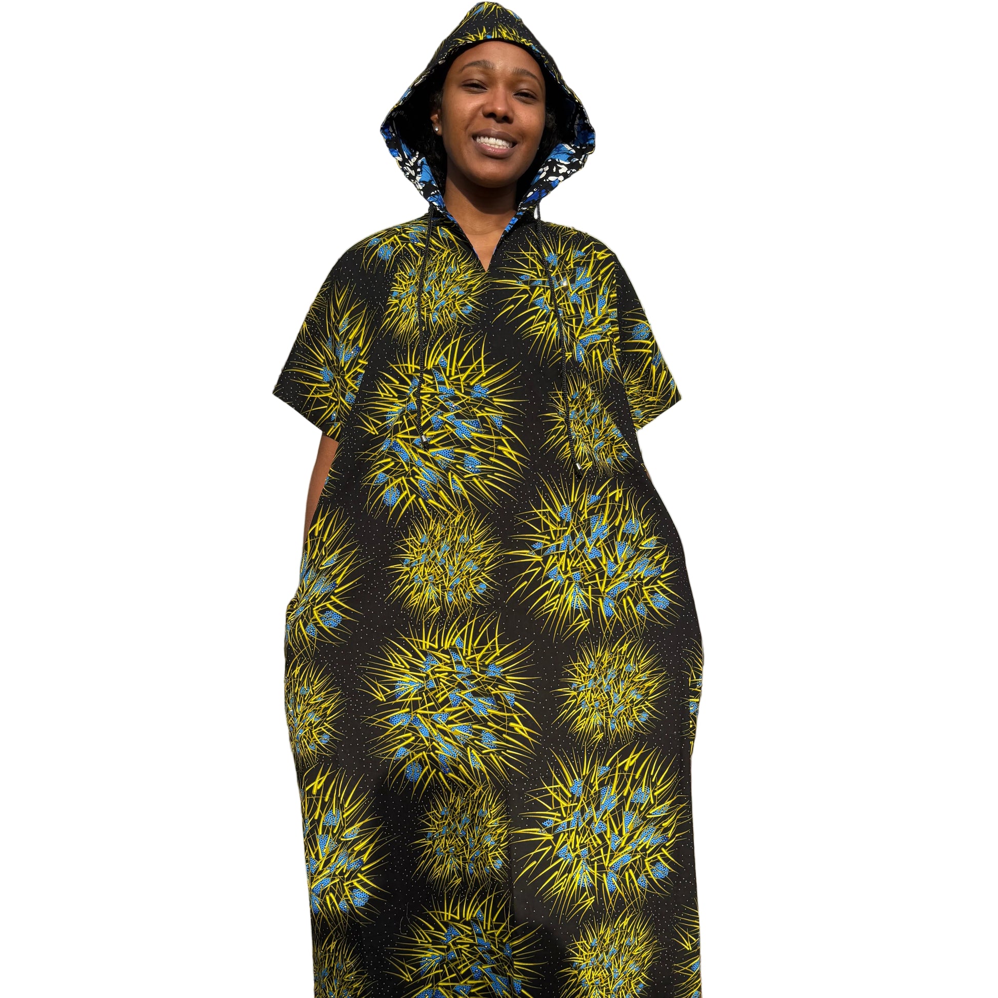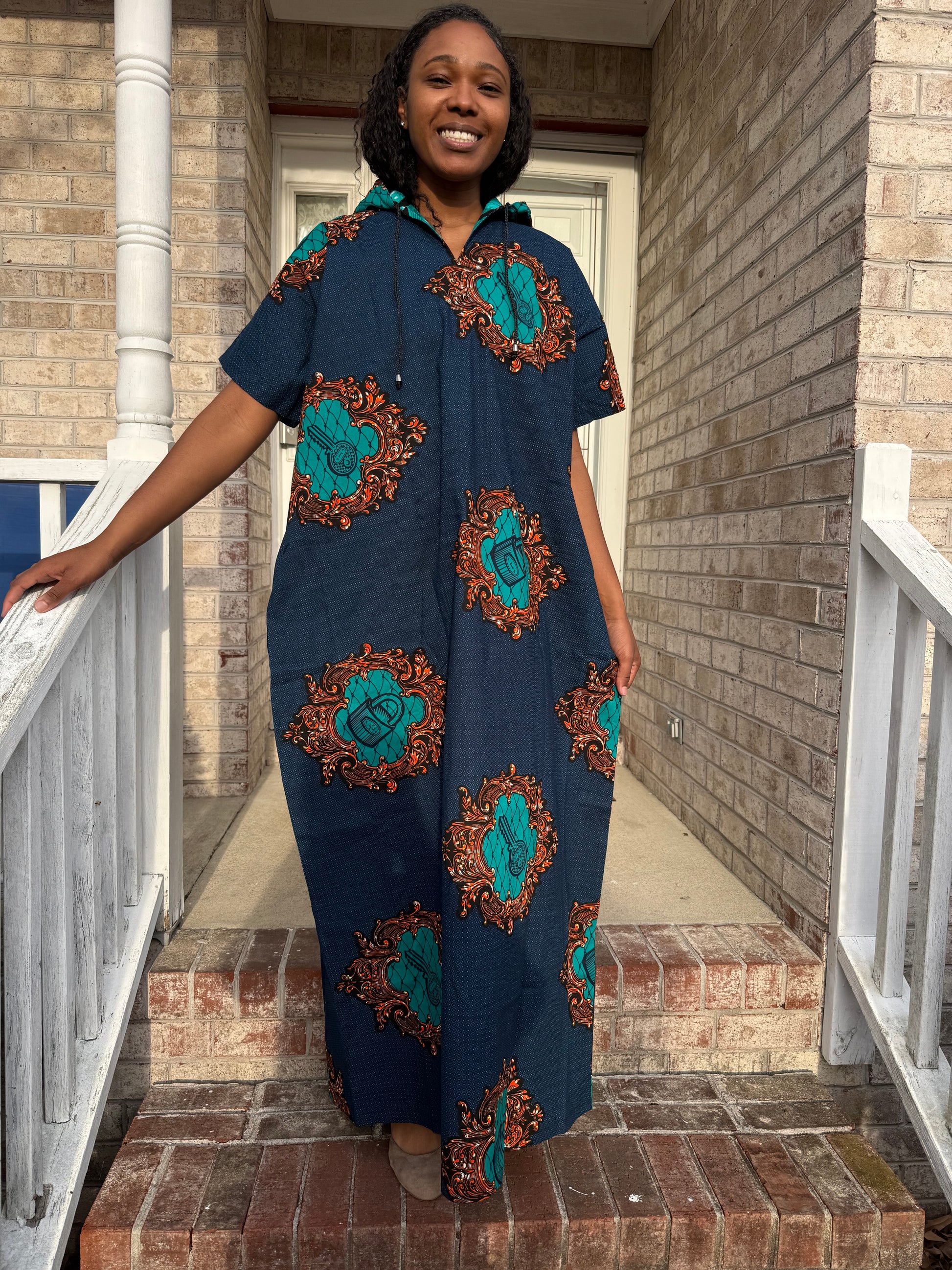 Modern African Ankara Wax Print Hooded Dress with Glittery stones