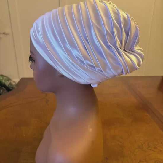 This colorful layered step pattern turban is a 1p. The glitters adds a retro and fun touch to any outfit . It’s layered pattern brings character and a playful elegance that will enhance your style with ease. A double-lined light, breathable, and washable.