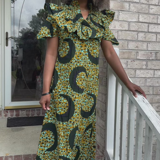 This colorful 100% cotton Ankara dress is a vibrant and eye-catching garment that showcases the rich cultural heritage and artistic traditions of Africa. This dress feature bold and intricate geometric patterns. The use of 100% Phoenix Hitarget cotton fabric ensures that the dress is breathable, comfortable, and perfect for all weather. This dress is lined for comfort.