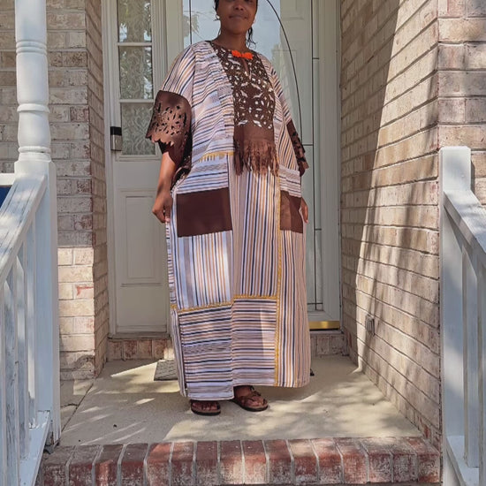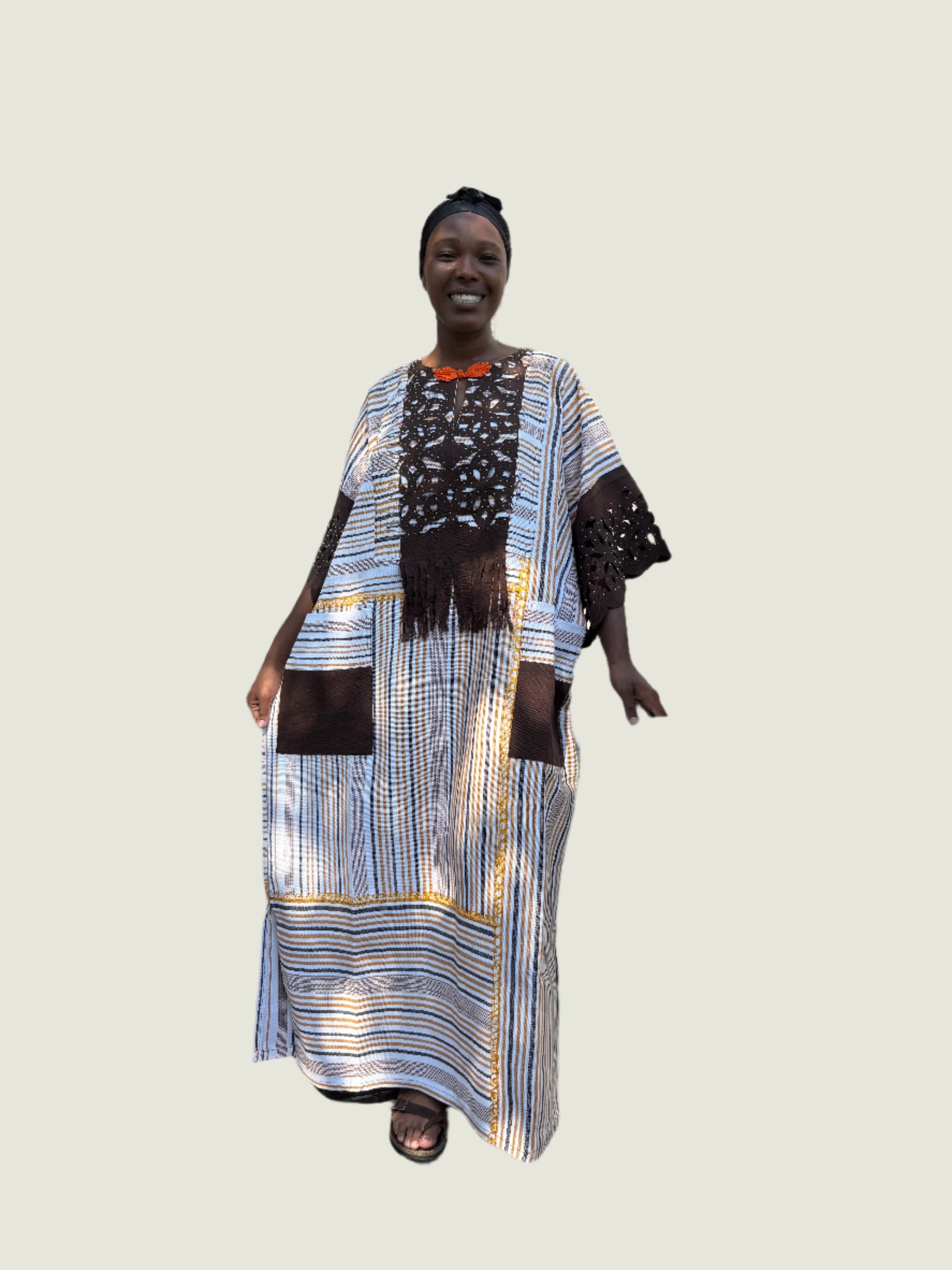 Special African Traditional Woven Aso-Oke/Kente Boubou Maxi Dress