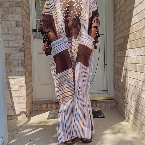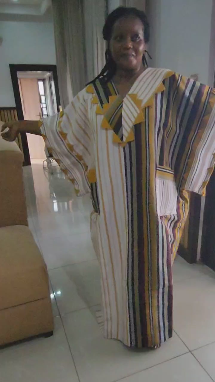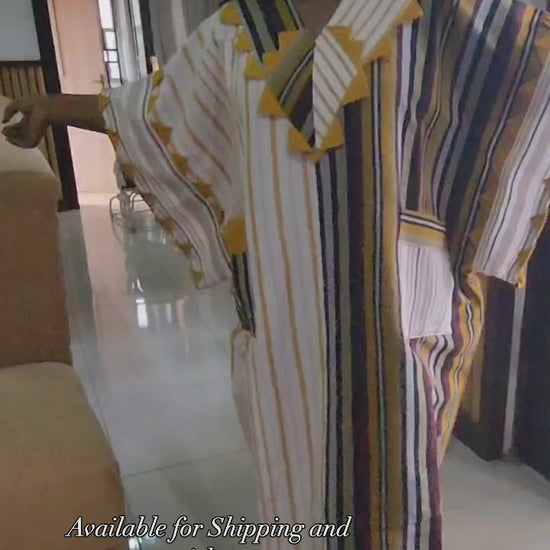 High quality beautifully patterned, modern styles, 100% Cotton African woven Aso Oke/Kente fabric. This floor-length dress makes an impressive addition to any formal wardrobe, ideal for cultural celebrations, evening galas, or any event where you want to make a memorable entrance. The combination of luxurious fabric, Embroidery and expert tailoring ensures this piece will become a treasured wardrobe statement. The throw compliments any African Outfit. These dress/kaftan is designed with elegance. Ideal for all occasions. A must have.