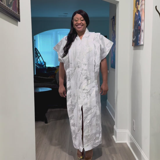 High Quality Luxury White African Damask Brocade Bubu/Boubou Maxi Dress Buga Style