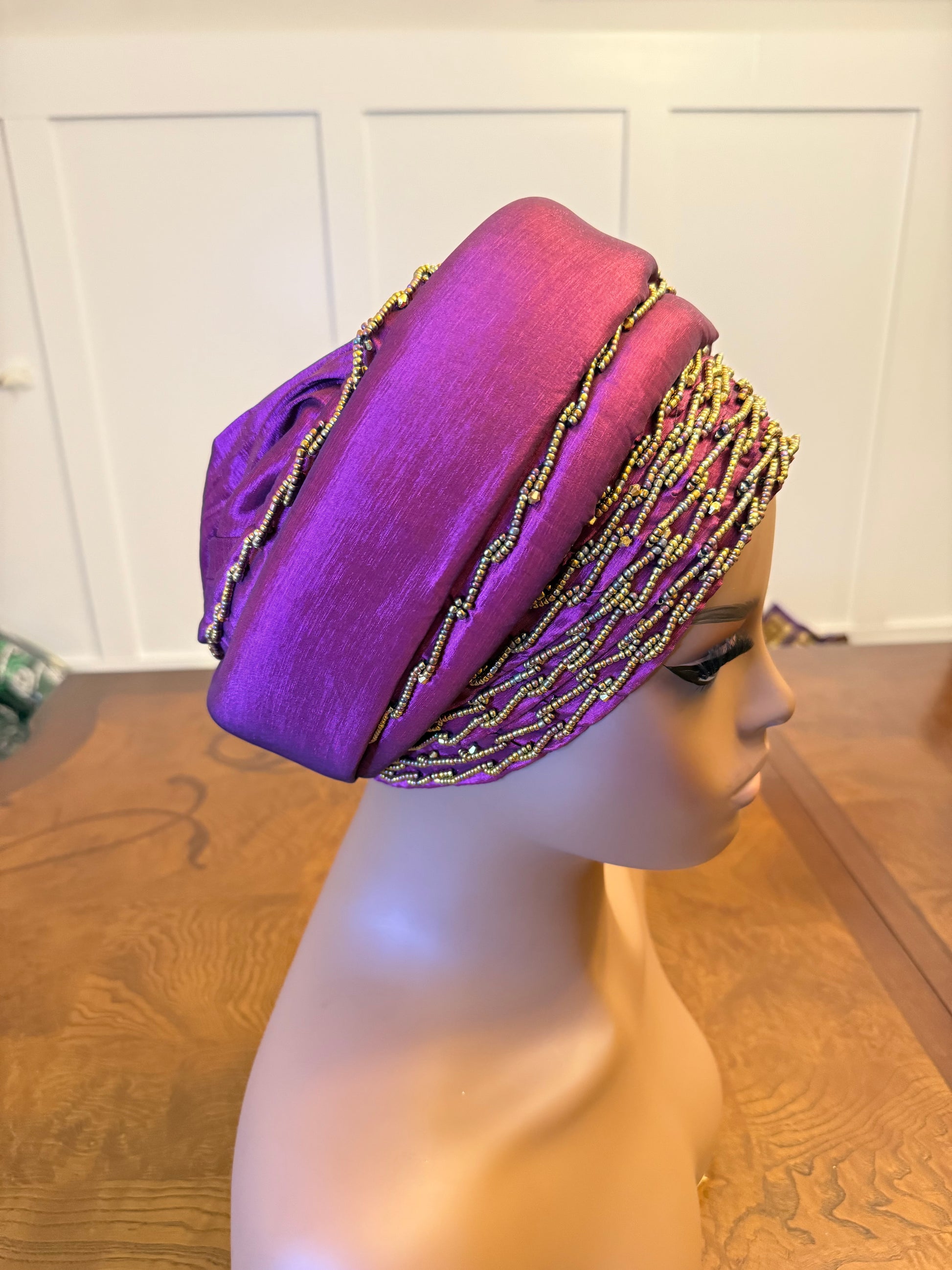 This colorful Beaded turban is 2/3 in 1p. The luxurious patterned beads adds a retro and fun touch to any outfit . It’s layered pattern brings character and a playful elegance that will enhance your style with ease. A double-lined light, breathable, and washable.