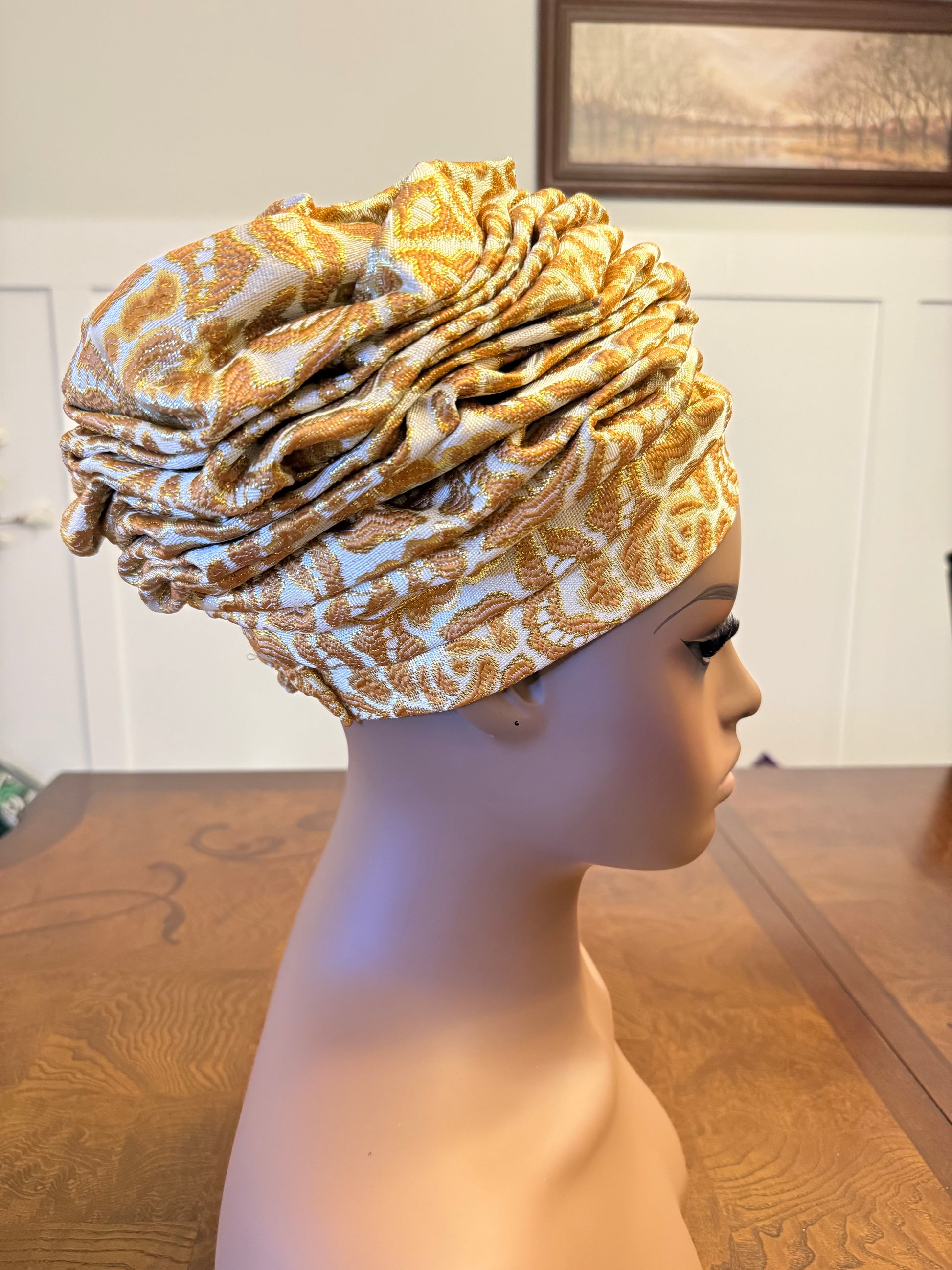 African Damask Flower Shaped Turban /Dastar/Hijab/Chador/Tigno/ headscarf/wrap/Hat