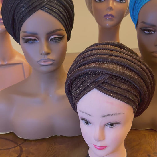 This colorful layered step pattern turban is a 1p. The glitters adds a retro and fun touch to any outfit . It’s layered pattern brings character and a playful elegance that will enhance your style with ease. A double-lined light, breathable, and washable.