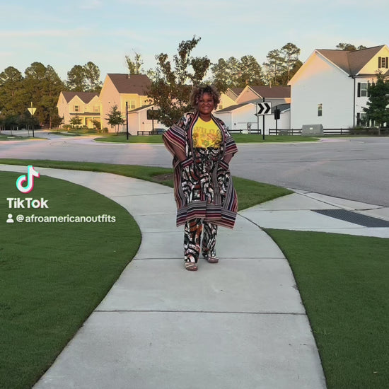 Modern Style African Print Ankara Aso-Oke/Kente Kimono 2p Pant Set