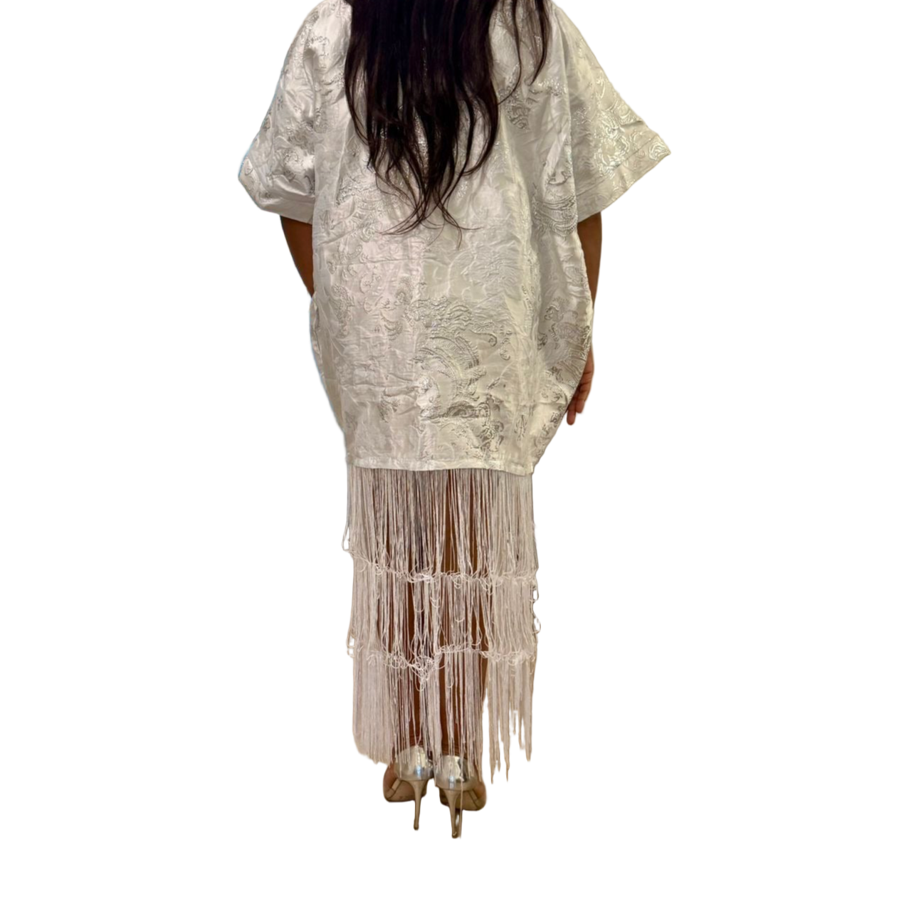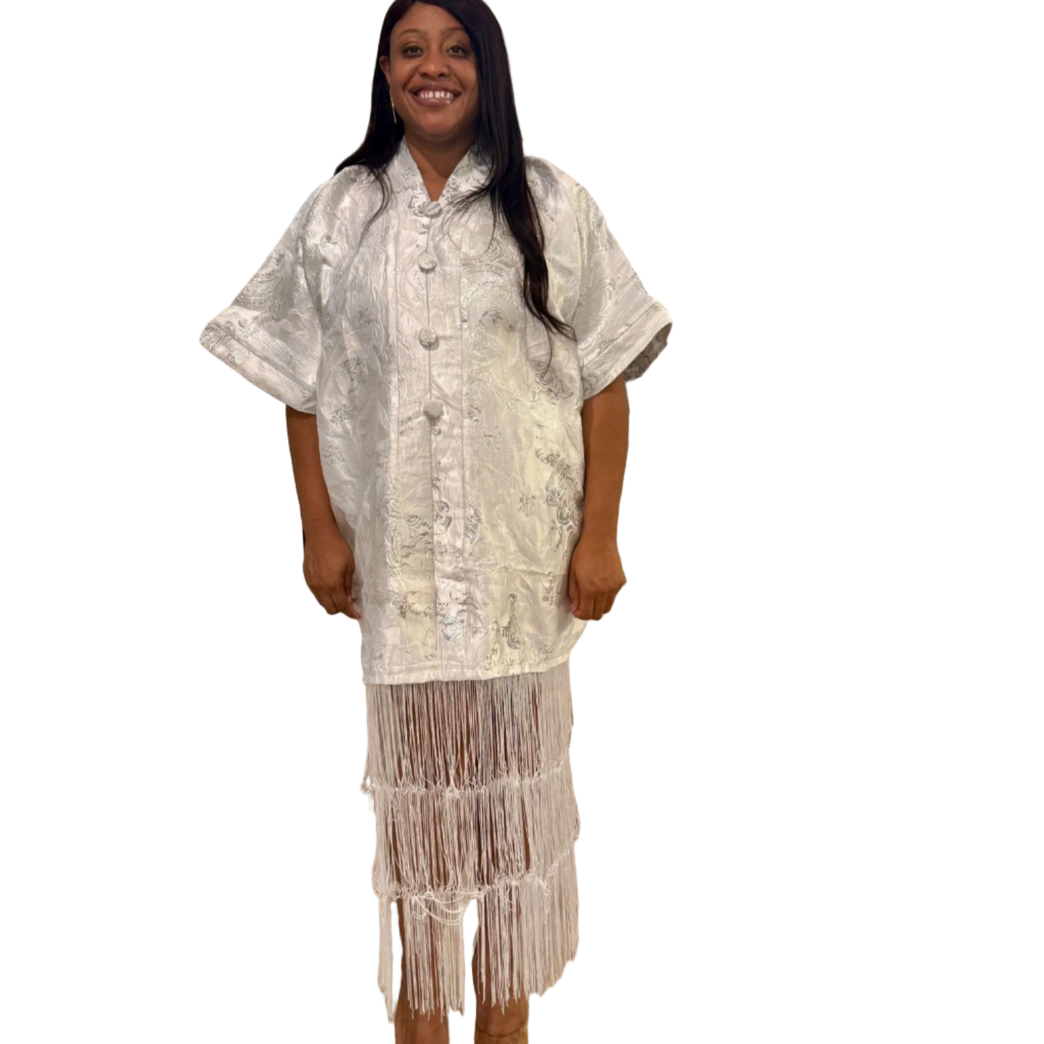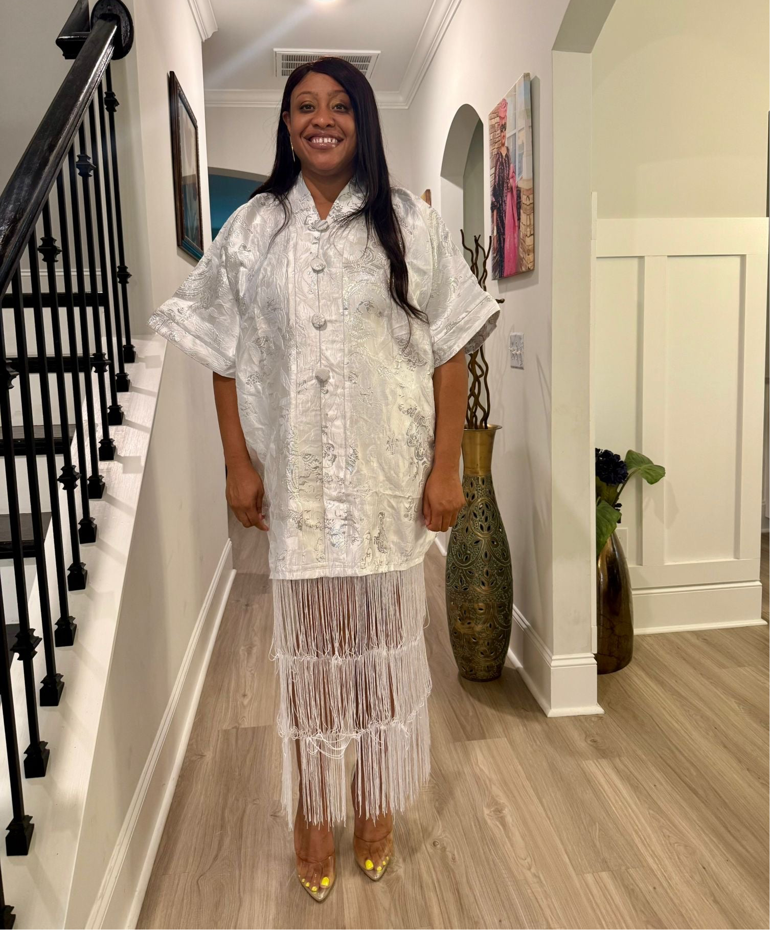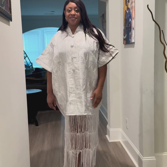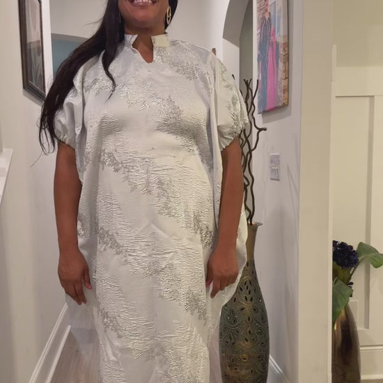 White Brocade African Maxi Dress: Modern Bubu/Boubou Gown